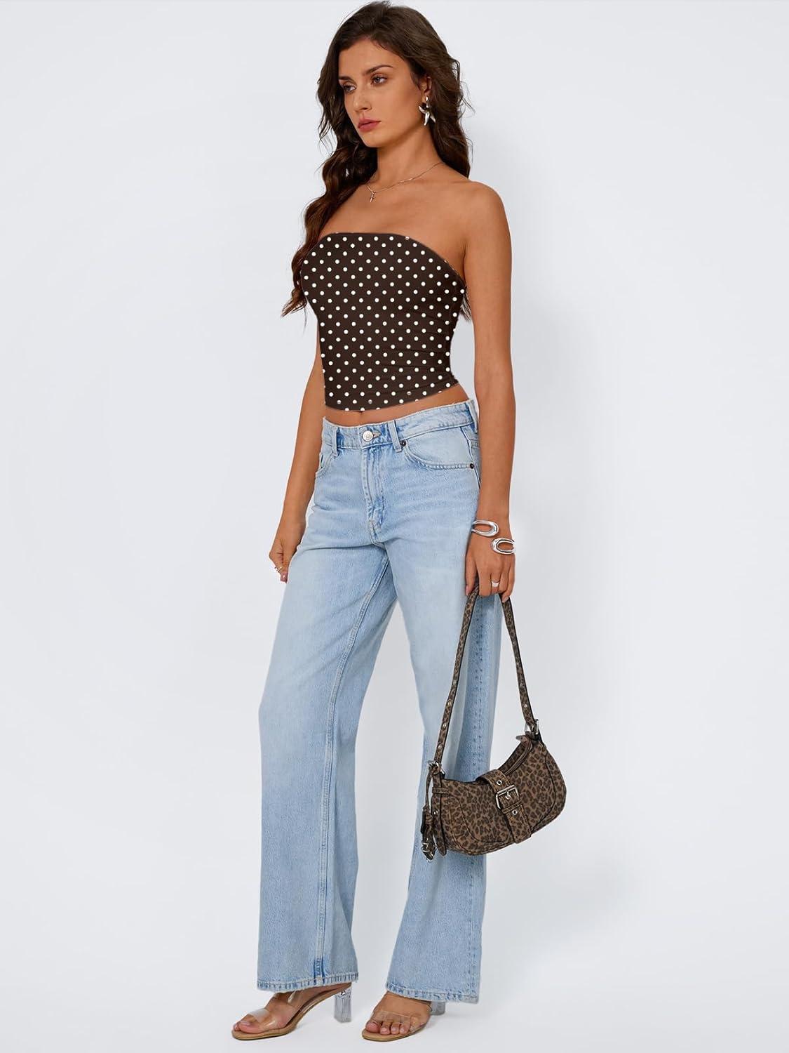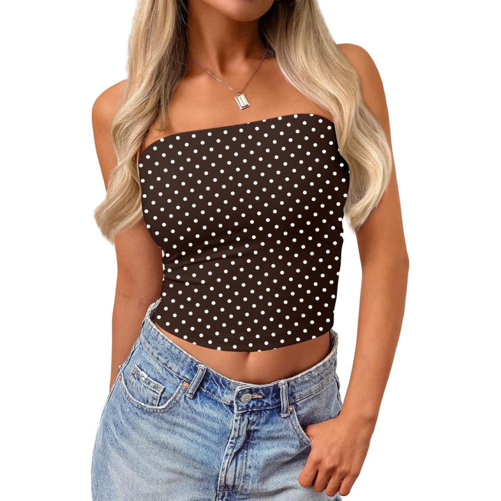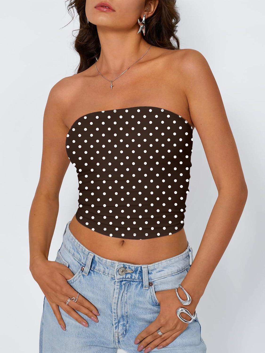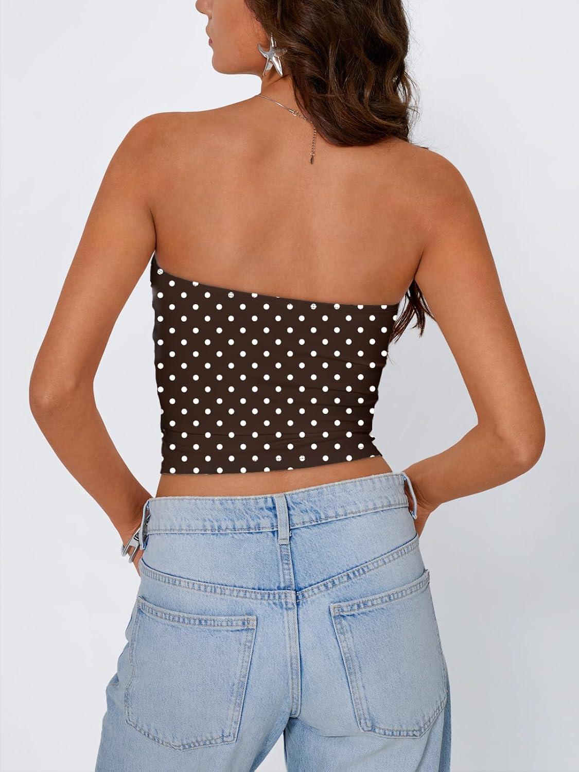 Trendy Queen Womens Tube Tops Going Out Summer Y2k Bandeau Trendy Crop Sleeveless Strapless Cute Teens 2026 Corset Floral(Brown Polka Dots)