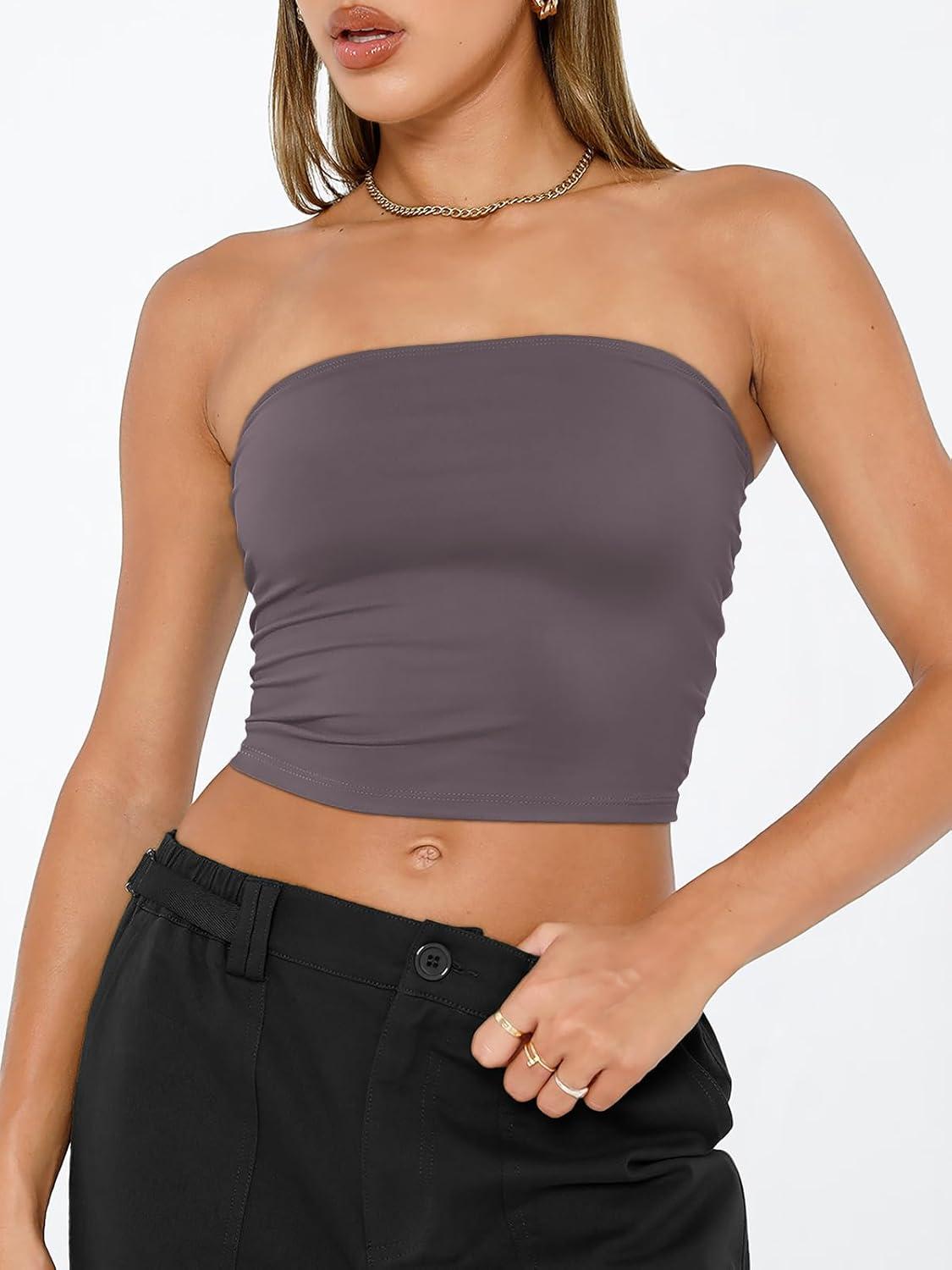 imageTrendy Queen Womens Tube Tops Strapless Crop Tops Basic Backless Sleeveless Bandeau Going Out Cute 2025 Summer OutfitsNutmeg