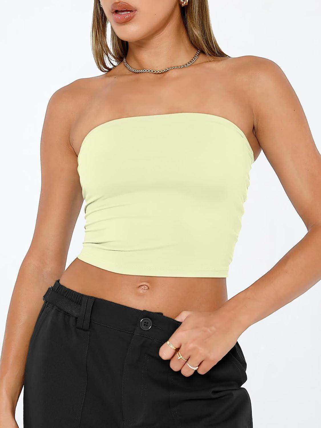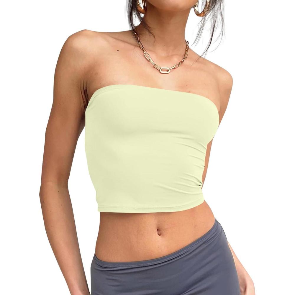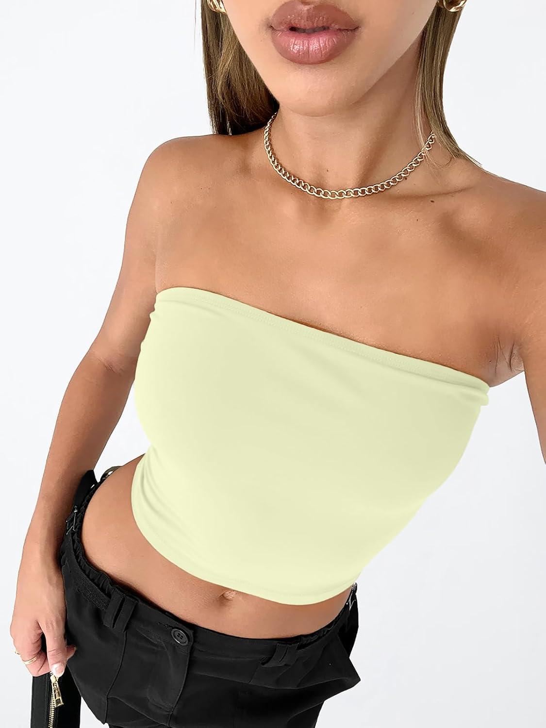 Trendy Queen Womens Tube Tops Strapless Crop Tops Basic Backless Sleeveless Going Out 2026 Spring Outfits Summer Clothes(Light Yellow)