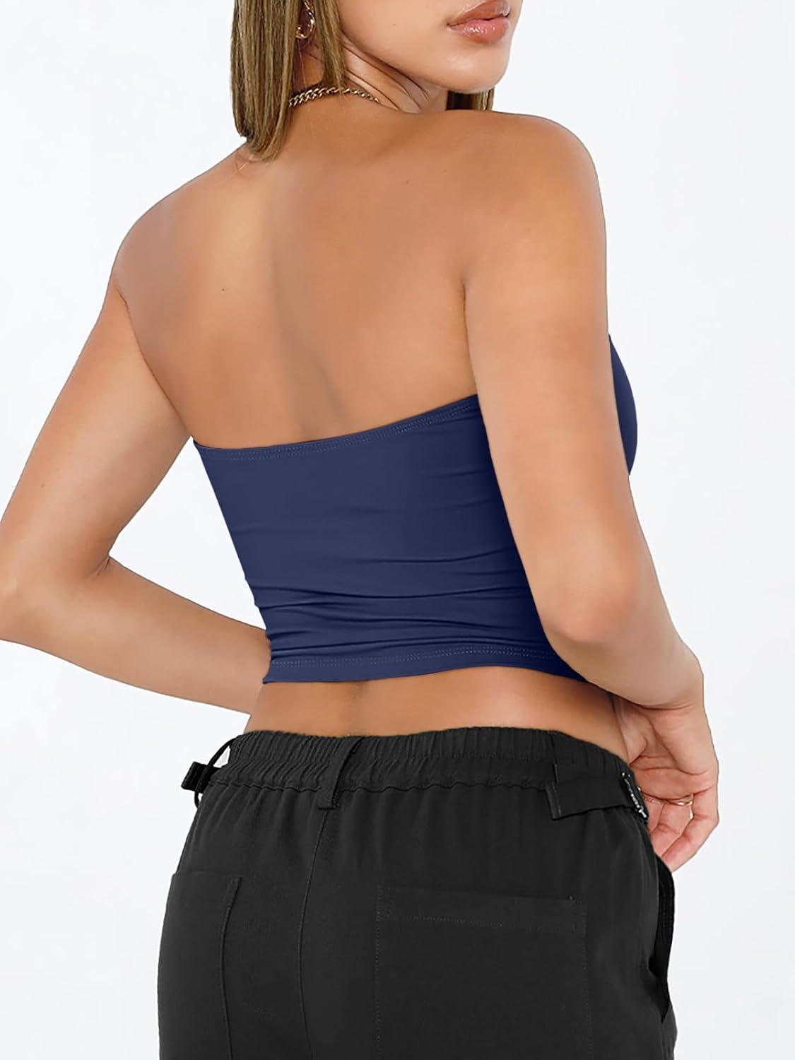 Trendy Queen Womens Tube Tops Strapless Crop Tops Basic Backless Sleeveless Going Out 2026 Spring Outfits Summer Clothes(Navy Blue)