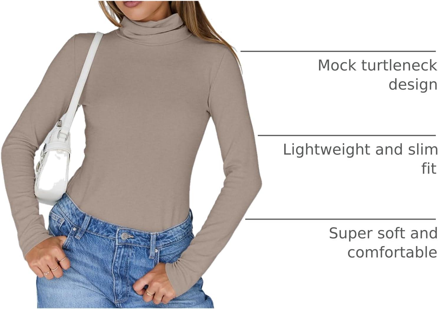 Trendy Queen Women’s Turtleneck Long Sleeve Shirts Spring Fashion Basic Thermal Underwear Tops Winter Clothes 2026(Khaki)