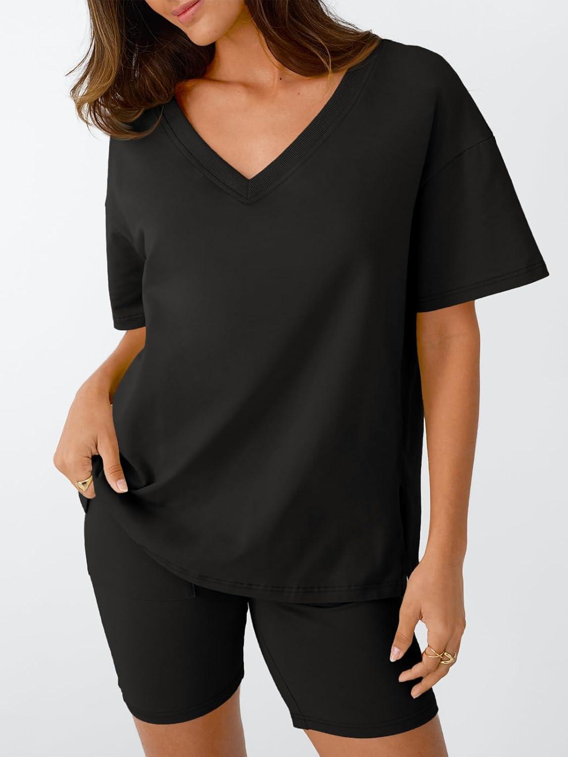 Trendy Queen Womens Two Piece Lounge Sets Summer Outfits 2025 Spring Fashion Vacation Tops Shorts Matching Tracksuits(Black)
