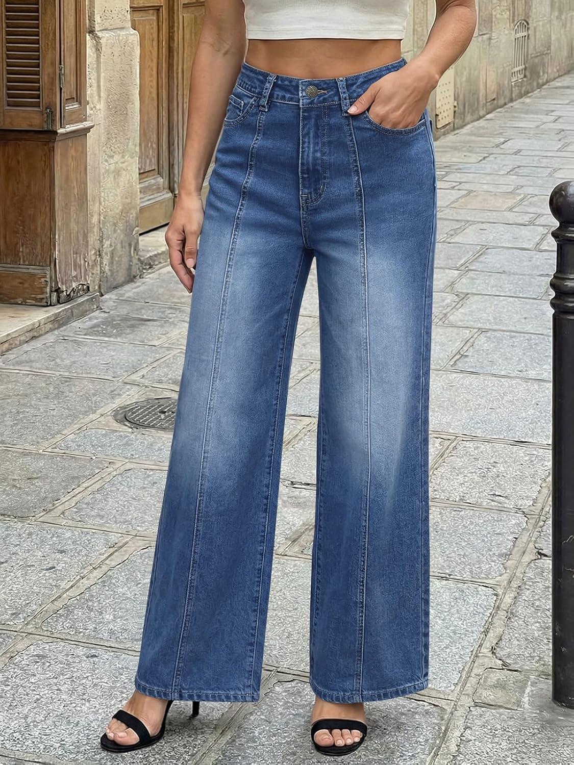 Trendy Queen Womens Wide Leg Jeans – High Waisted Baggy Pants, Soft Comfort Cotton Denim with a Relaxed Fit(Bluing)