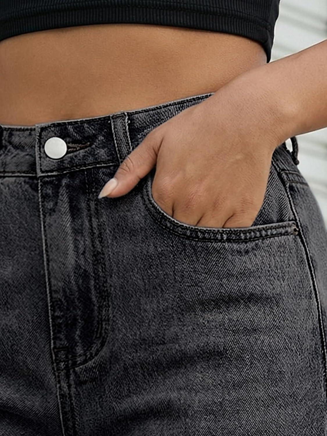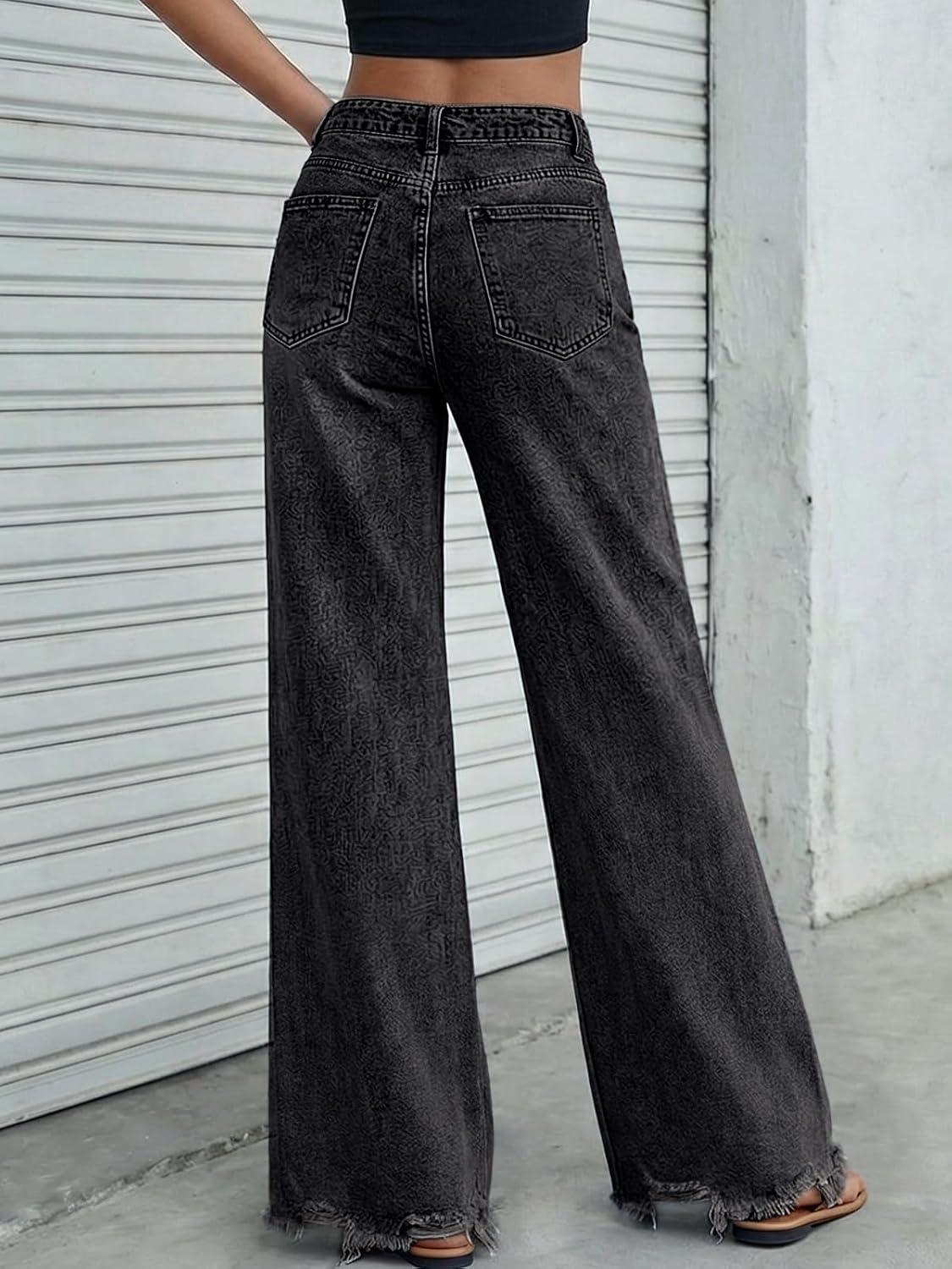 imageTrendy Queen Womens Wide Leg Jeans Stretchy High Waisted Straight Leg with Raw Hem Baggy Denim PantsBlack