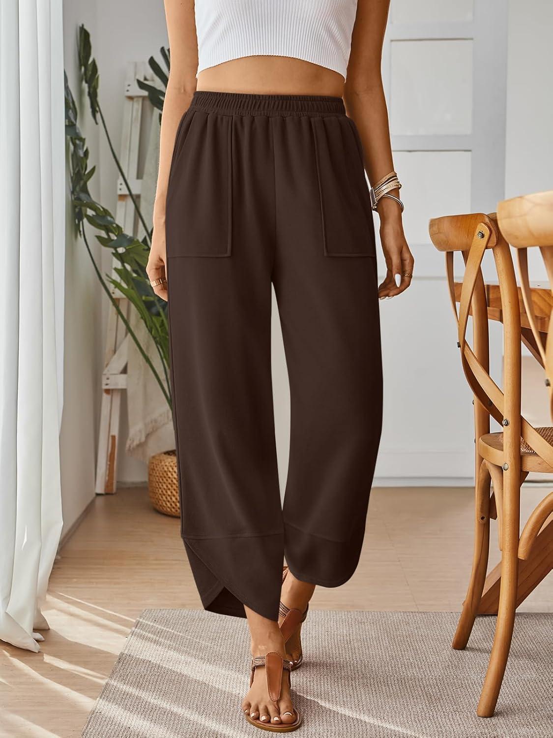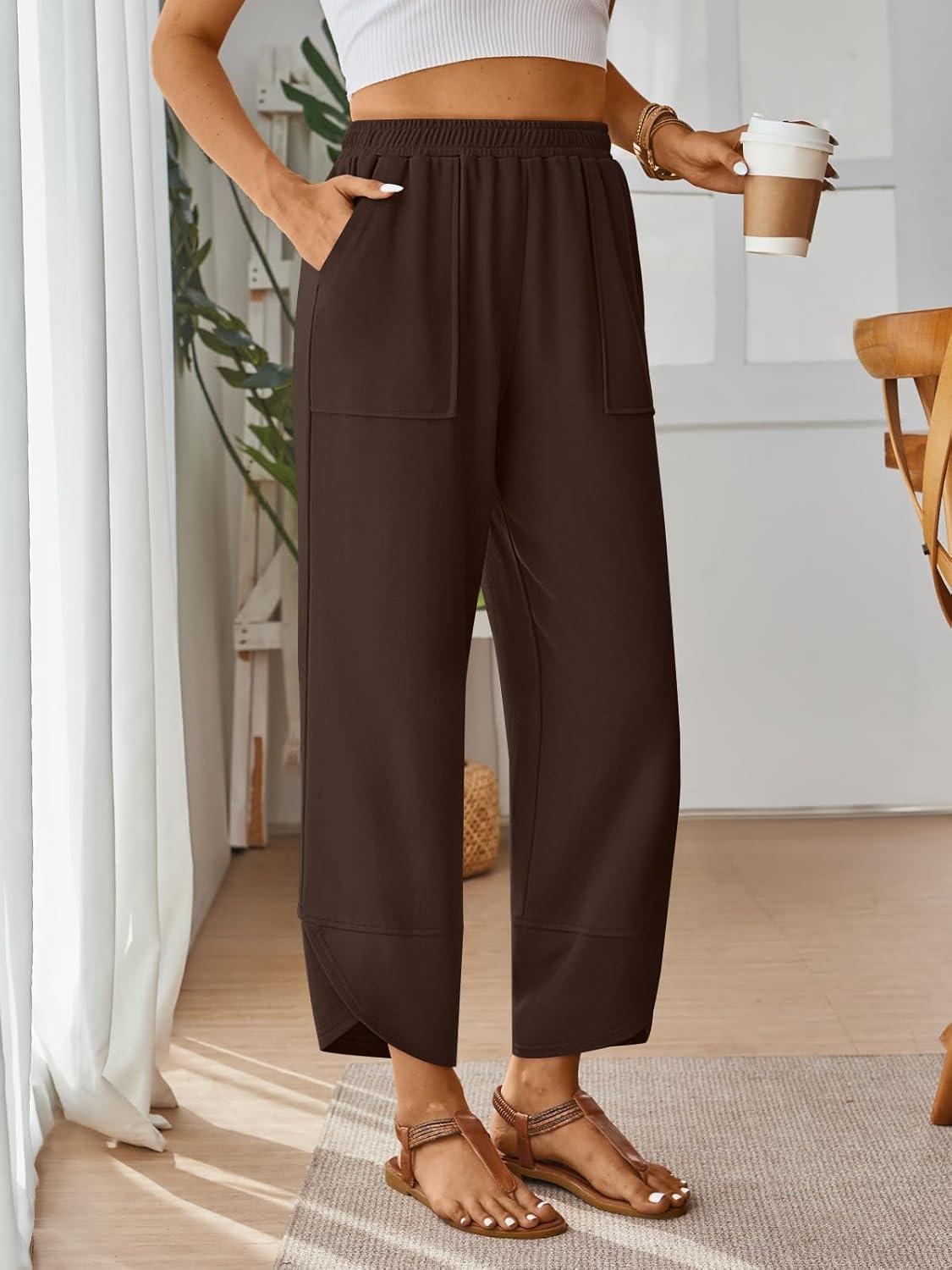 Trendy Queen Women's Wide Leg Pants Summer Capri Palazzo Harem Casual Barrel Sweatpants Baggy Slacks with Pockets(Brown)