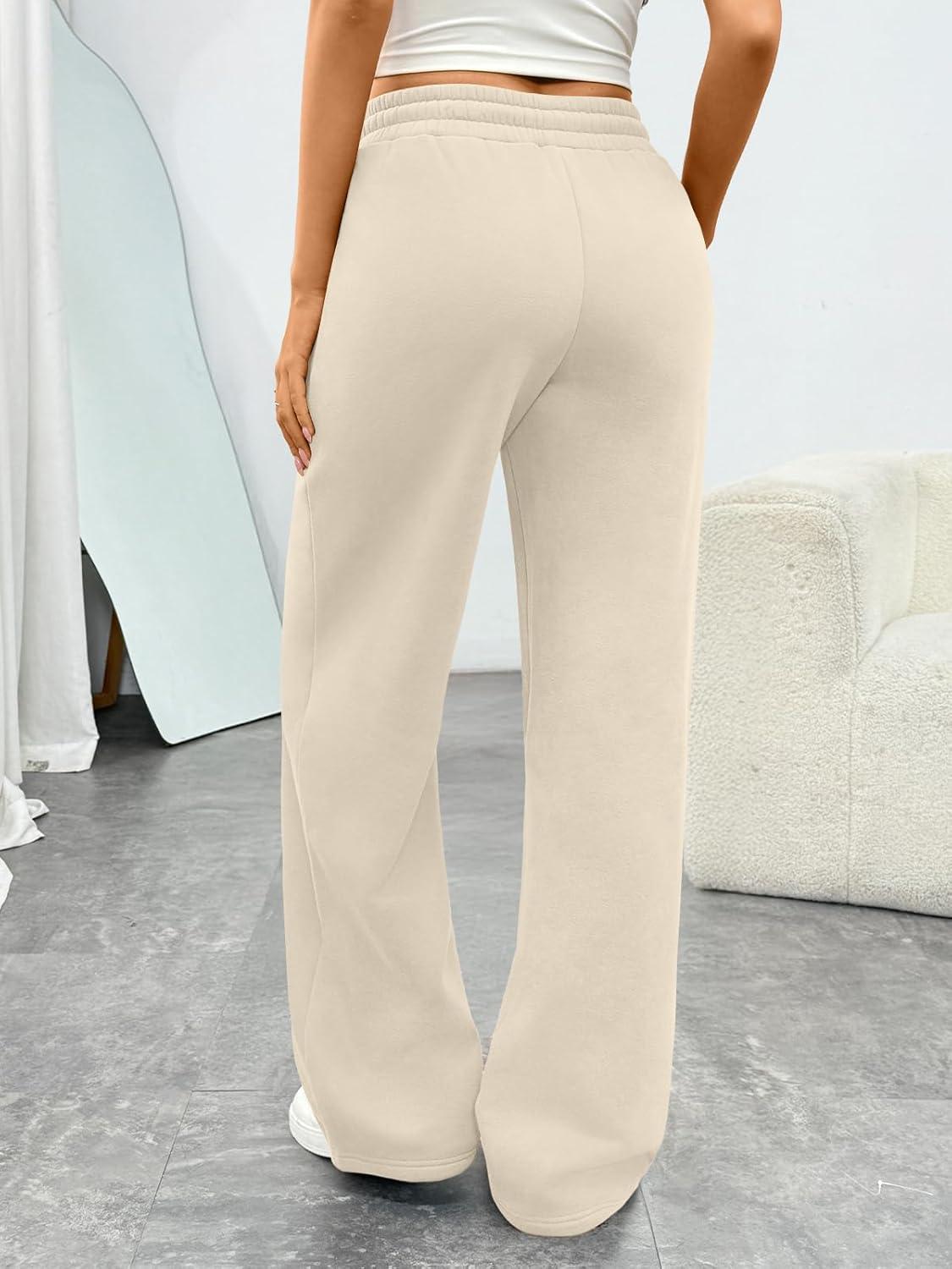 Trendy Queen Women‘s Wide Leg Sweatpants, Baggy Barrel Pants with Pockets, High Waist Lounge Joggers for Fall Winter(Beige)