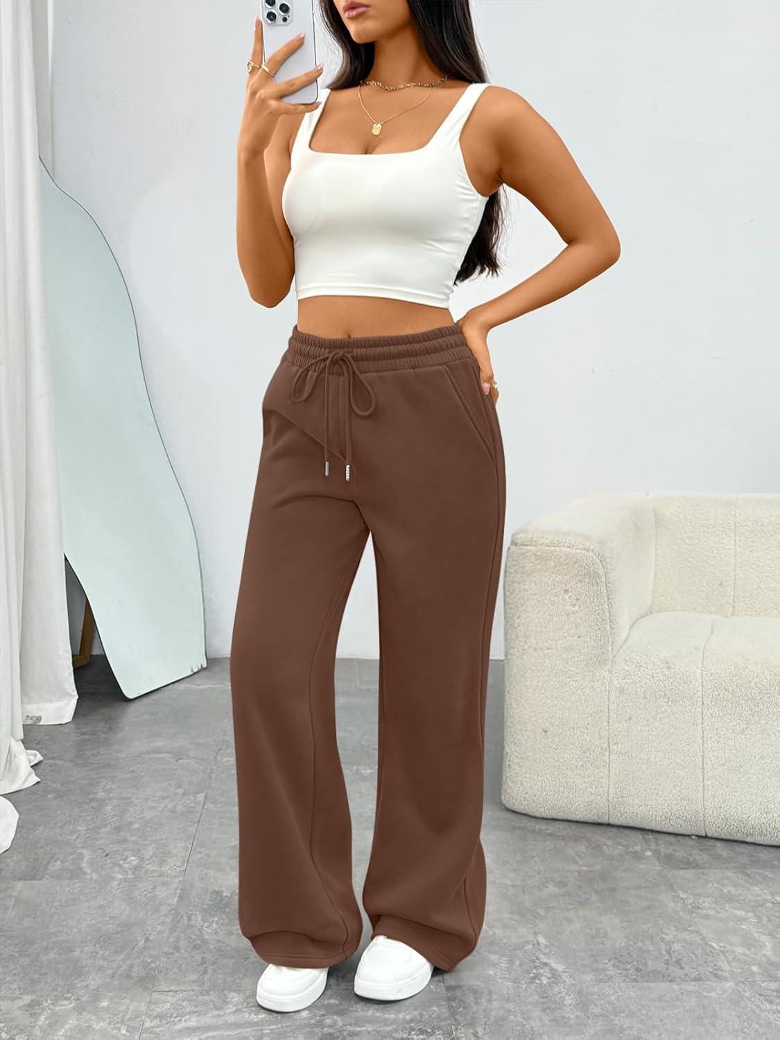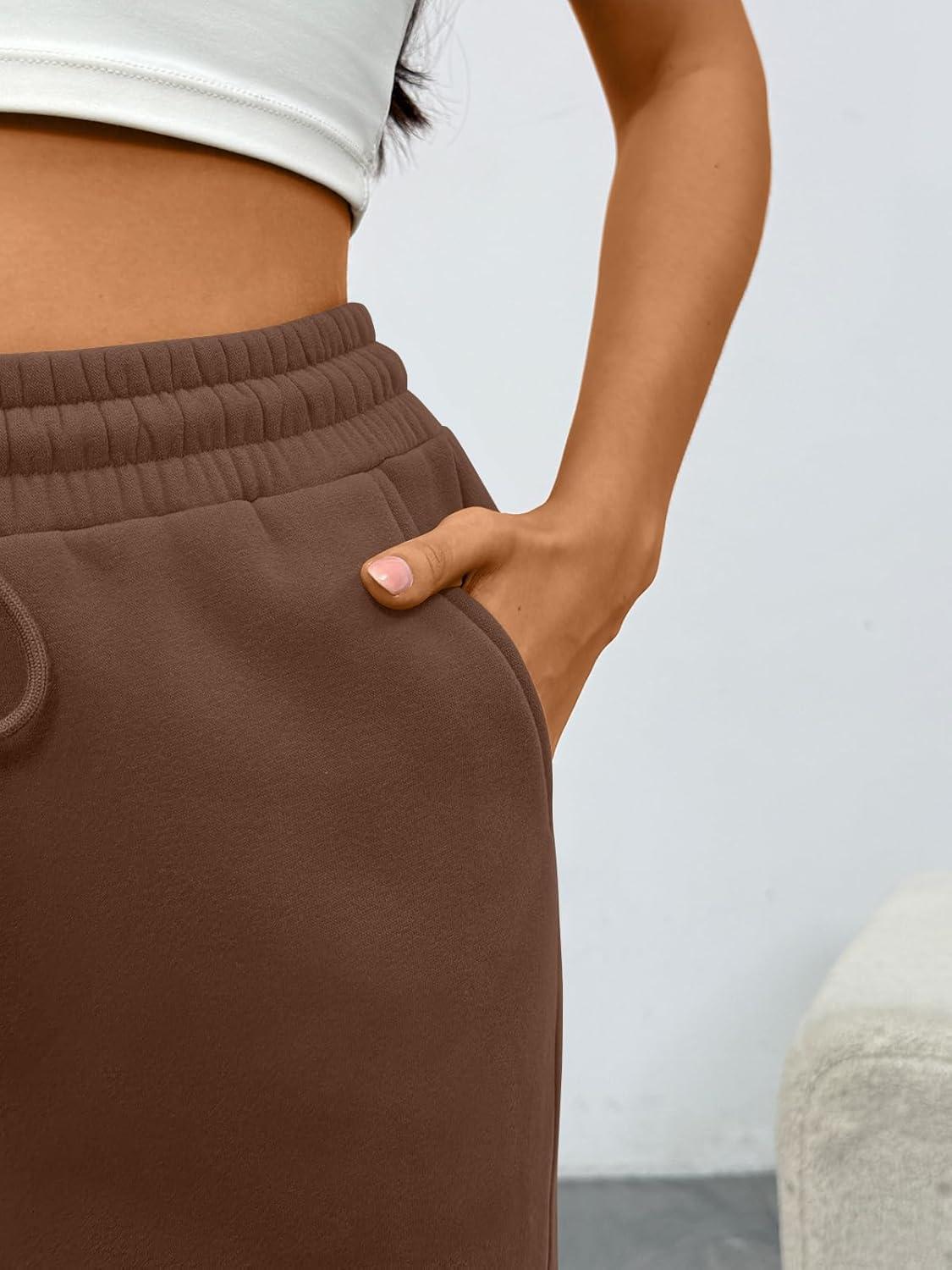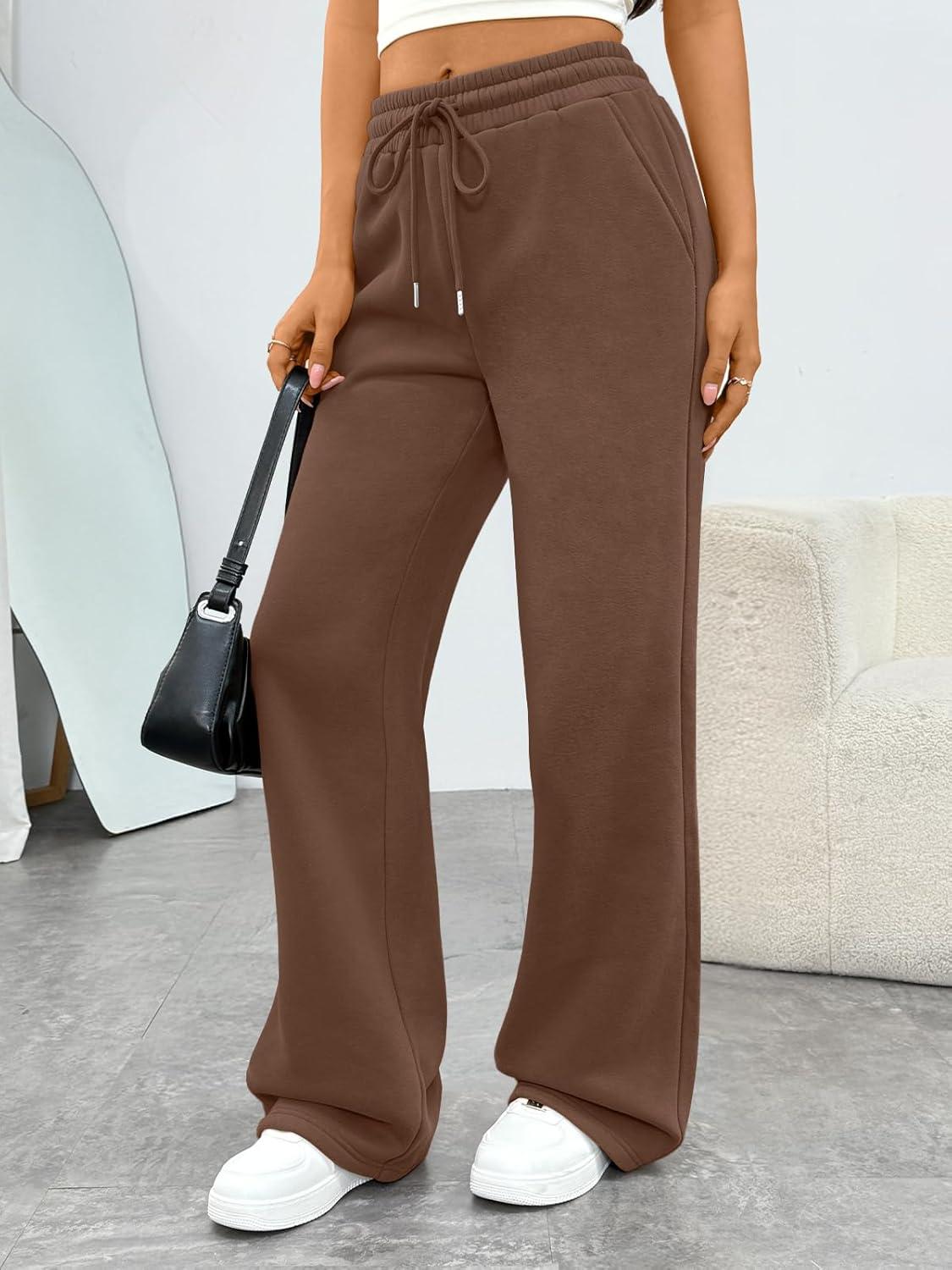 Trendy Queen Women‘s Wide Leg Sweatpants, Baggy Barrel Pants with Pockets, High Waist Lounge Joggers for Fall Winter(Coffee)