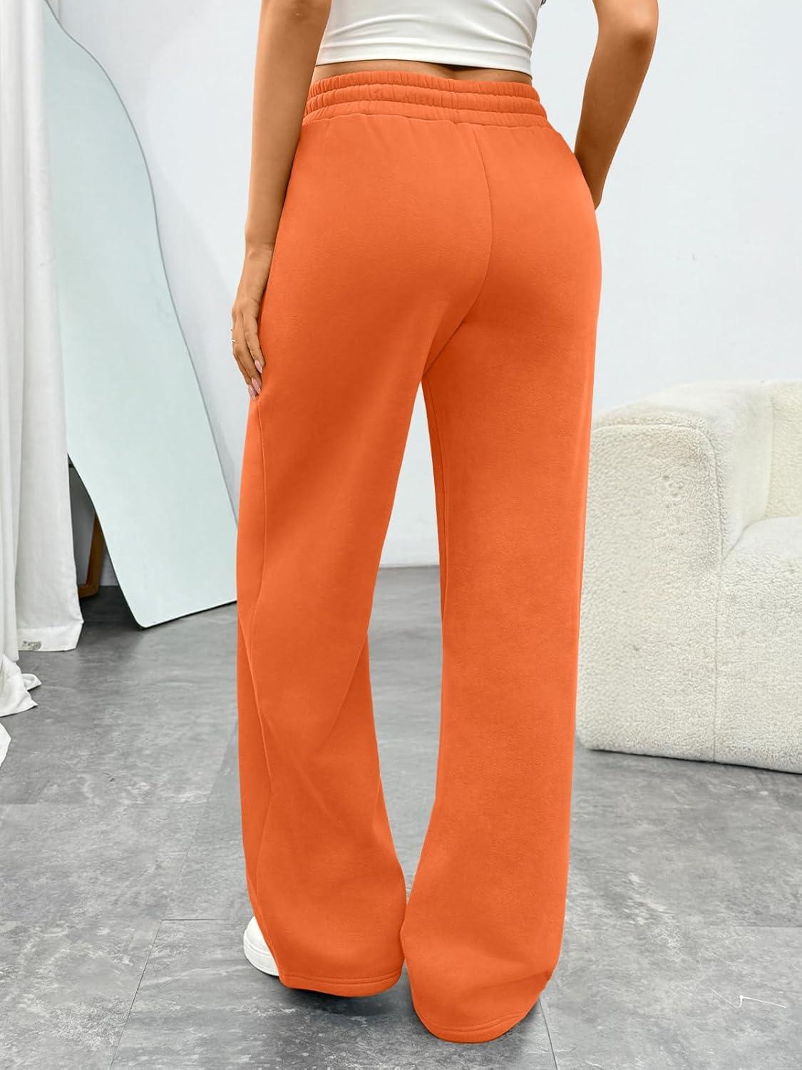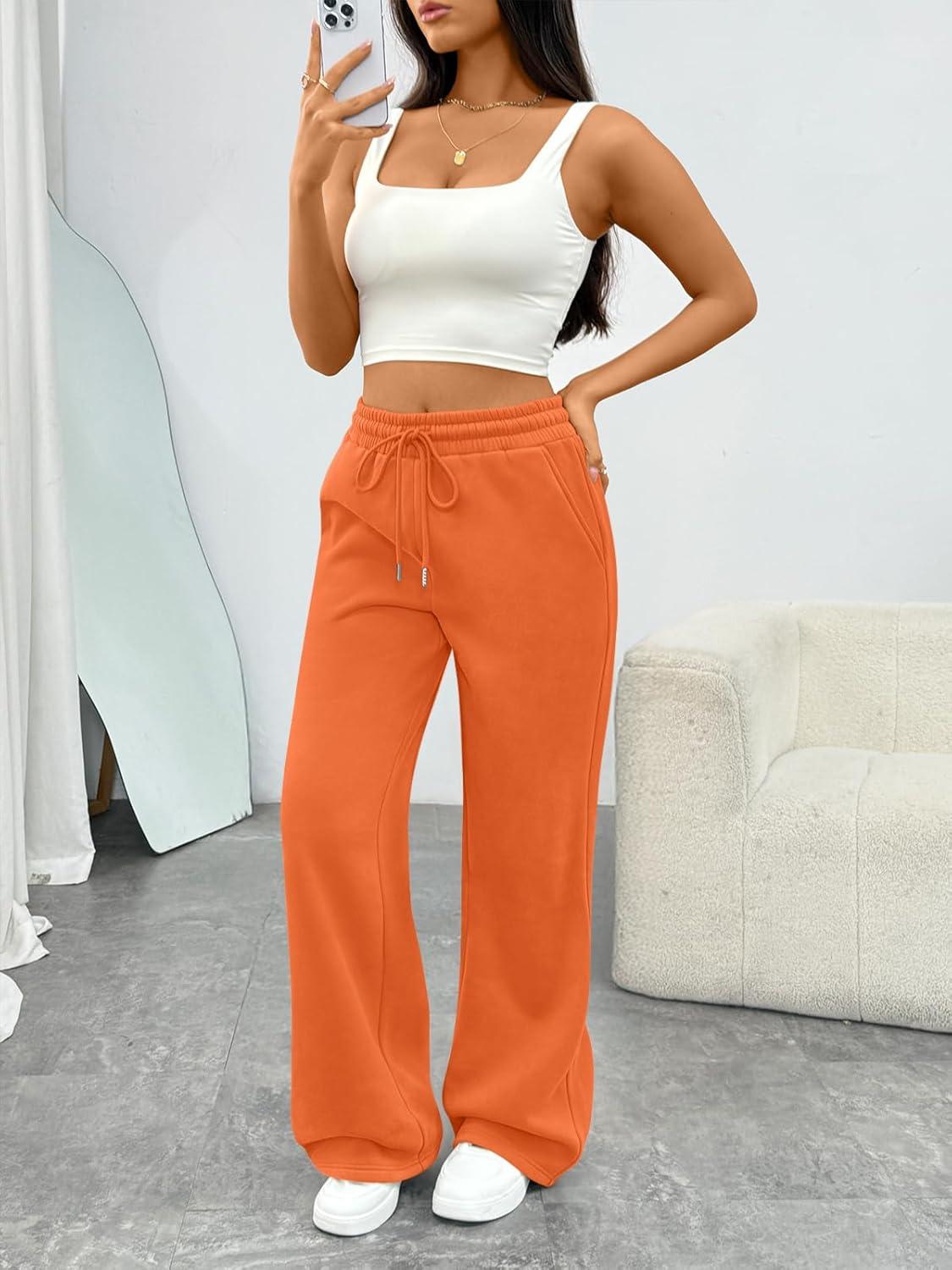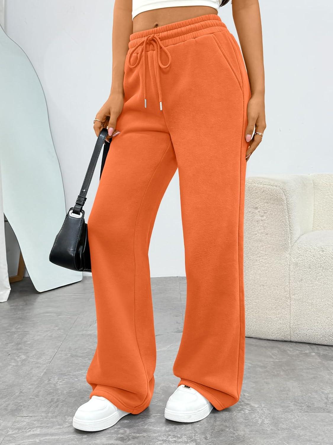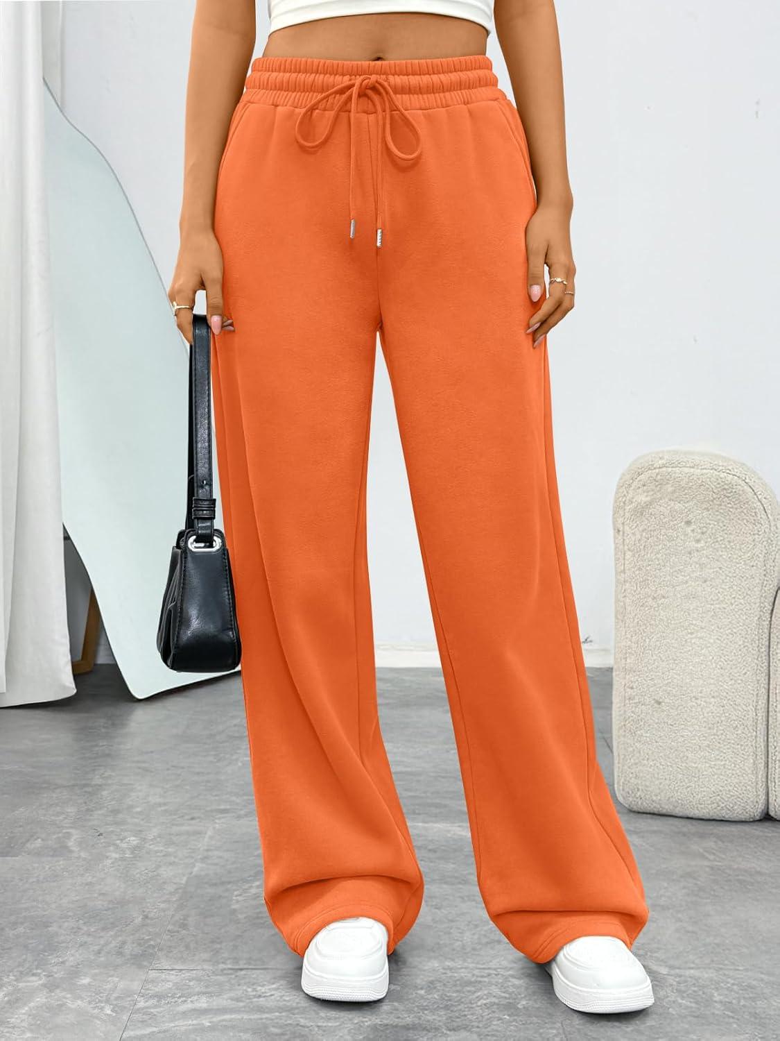 Trendy Queen Women‘s Wide Leg Sweatpants, Baggy Barrel Pants with Pockets, High Waist Lounge Joggers for Fall Winter(Orange)