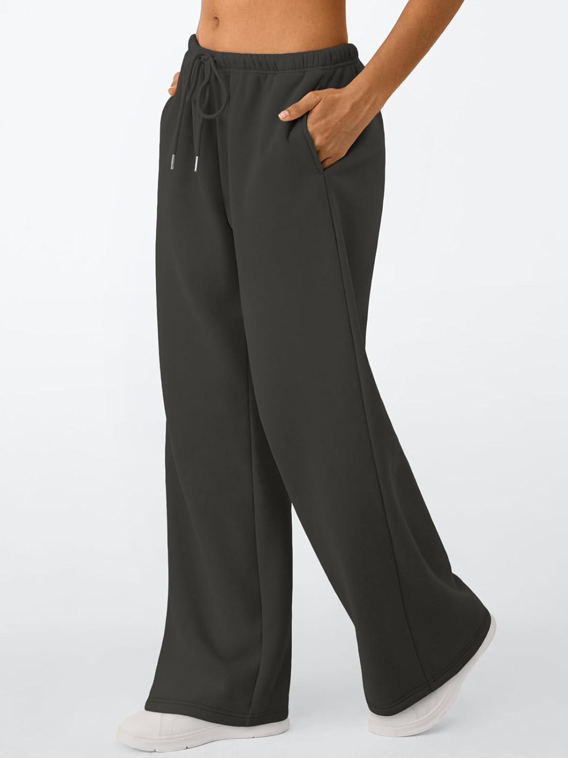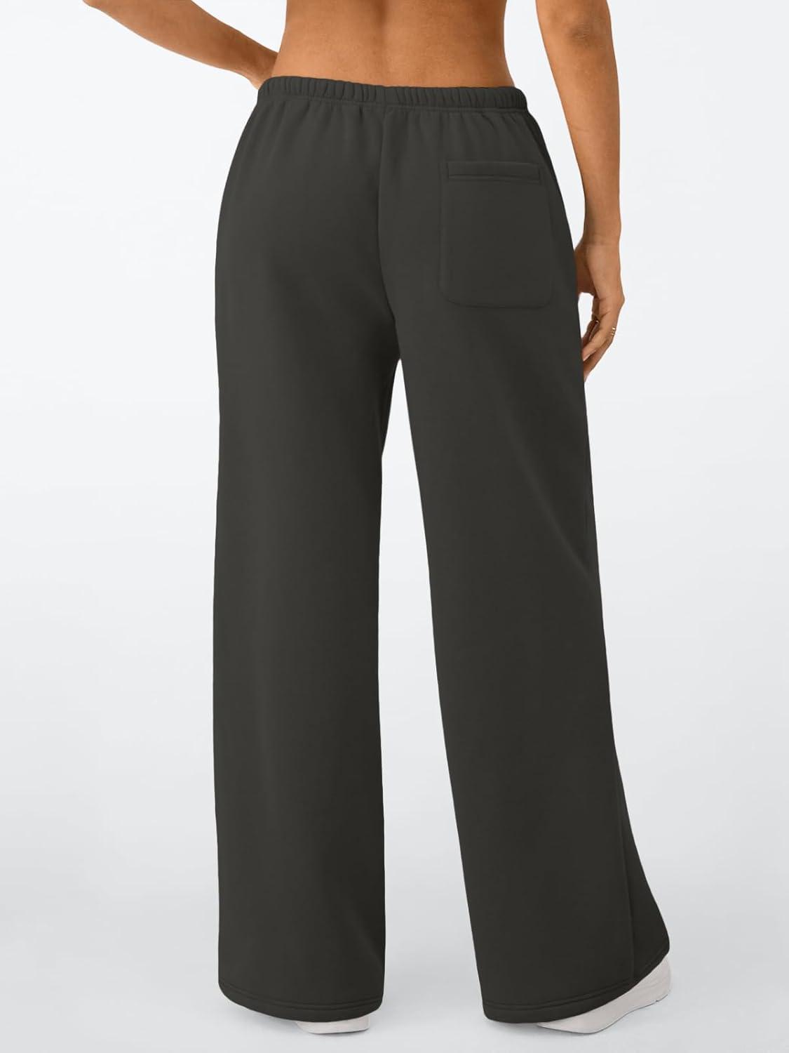 Trendy Queen Womens Wide Leg Sweatpants Baggy Drawstring Low Rise Lounge Pants 2026 Fall Joggers with Pockets(Black)