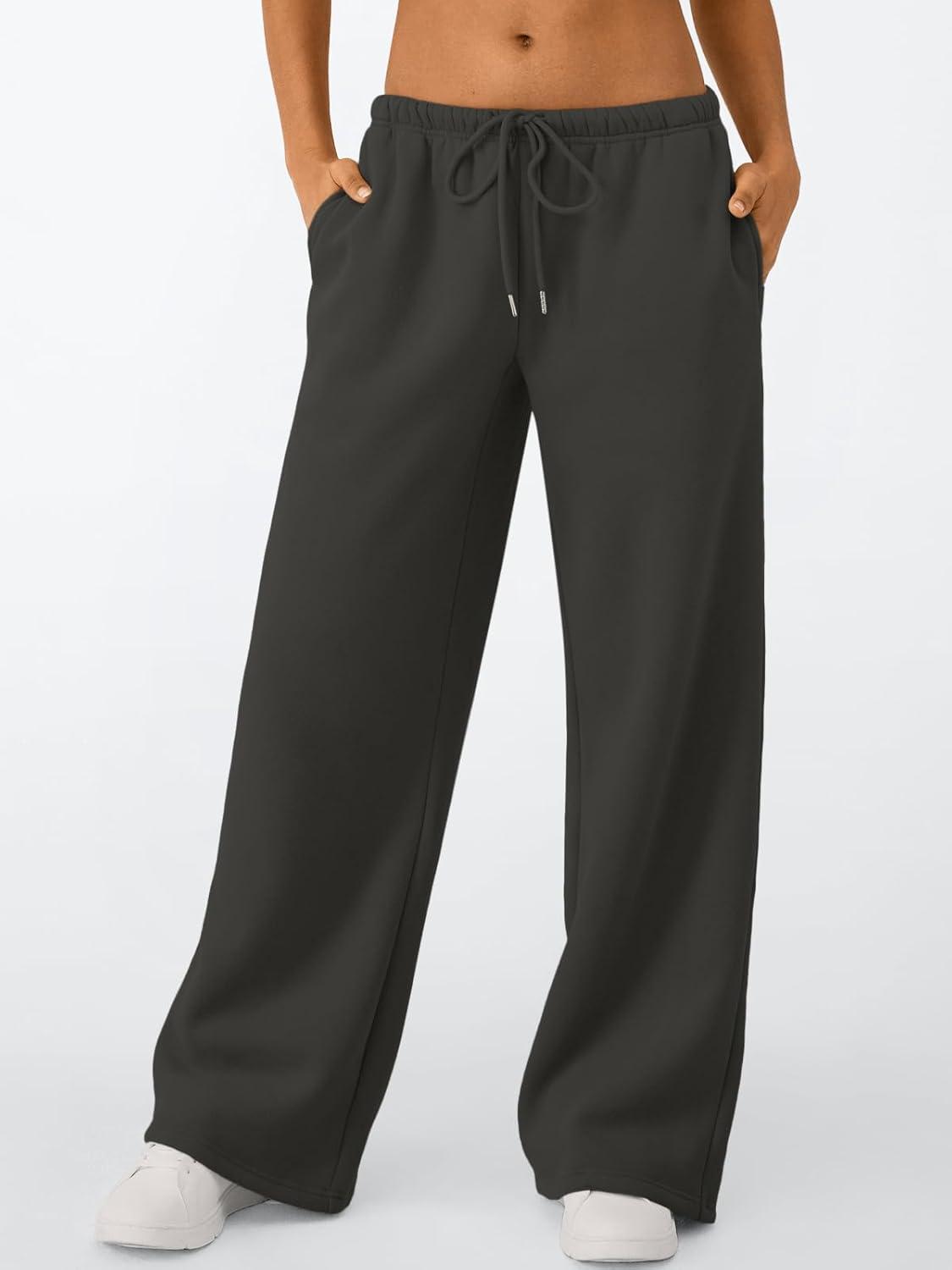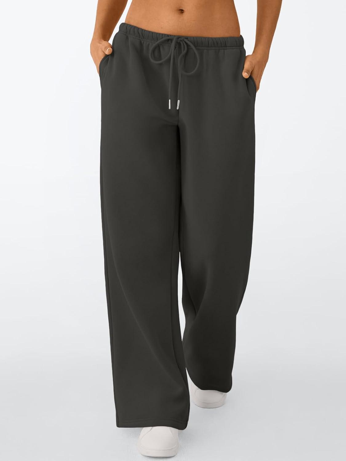 Trendy Queen Womens Wide Leg Sweatpants Baggy Drawstring Low Rise Lounge Pants 2026 Fall Joggers with Pockets(Darkgrey)