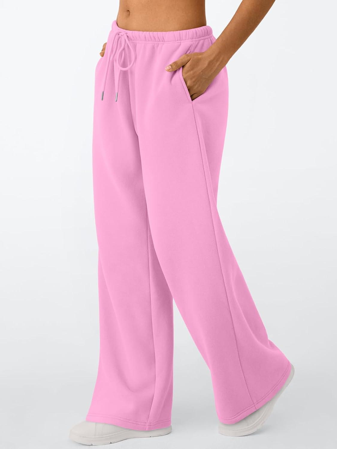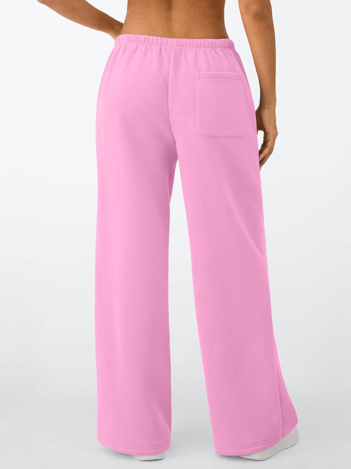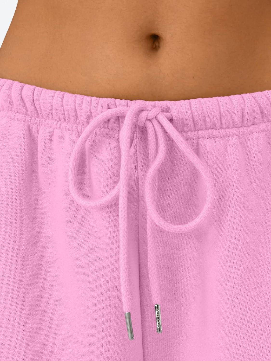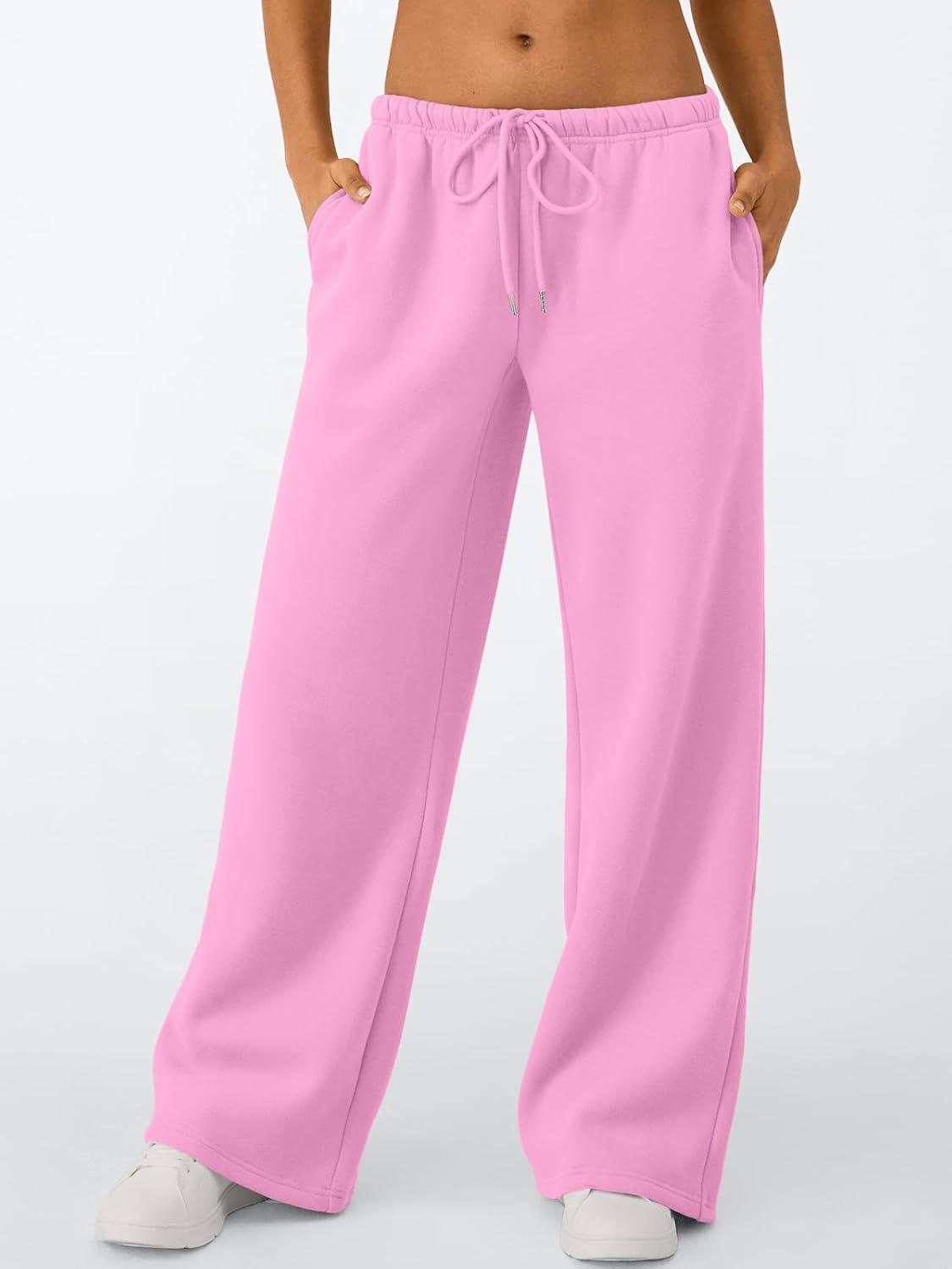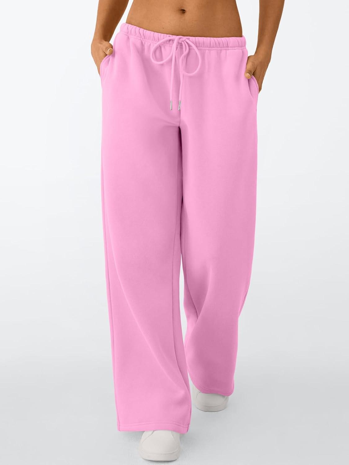 Trendy Queen Womens Wide Leg Sweatpants Baggy Drawstring Low Rise Lounge Pants 2026 Fall Joggers with Pockets(Pink)