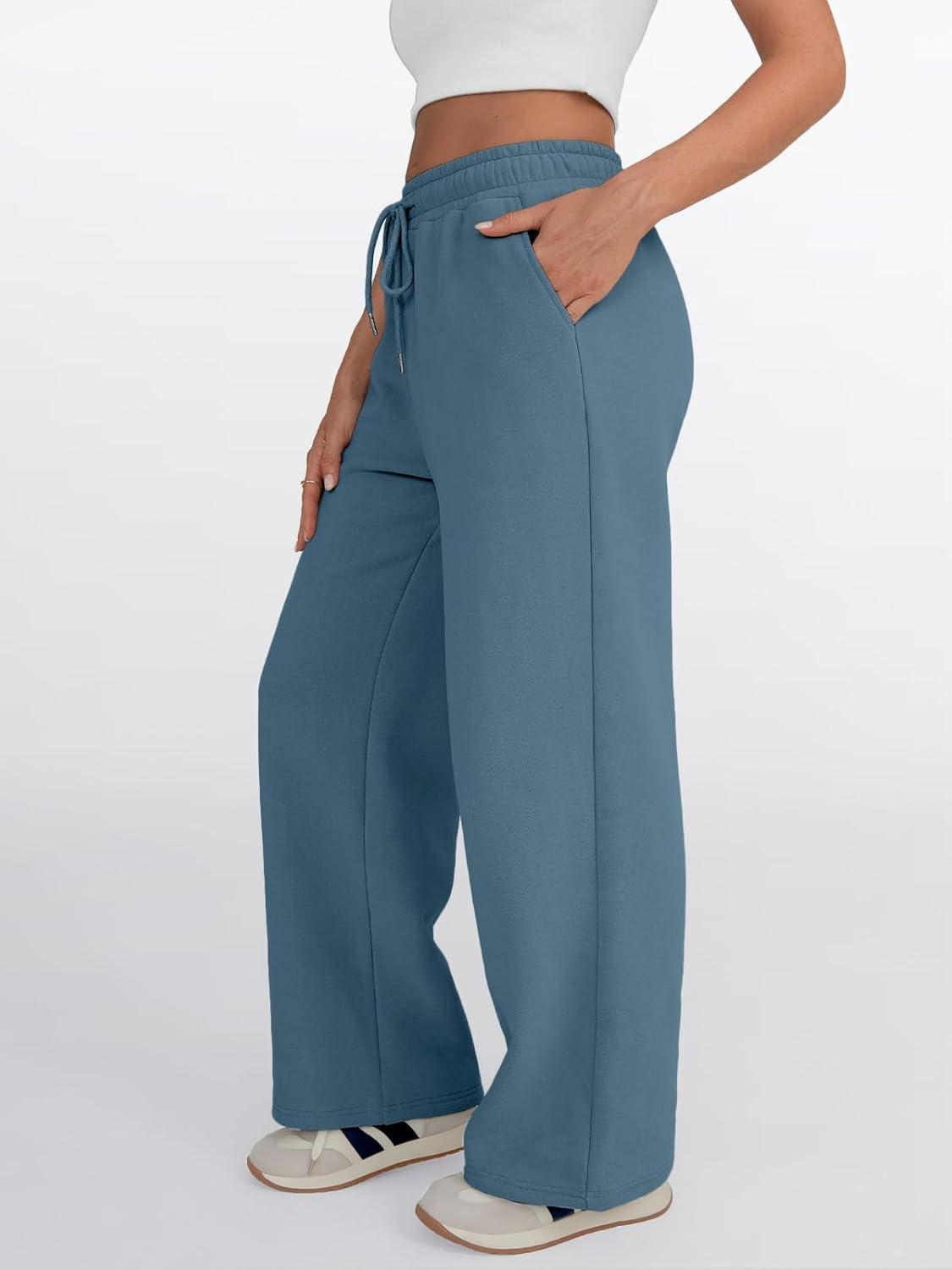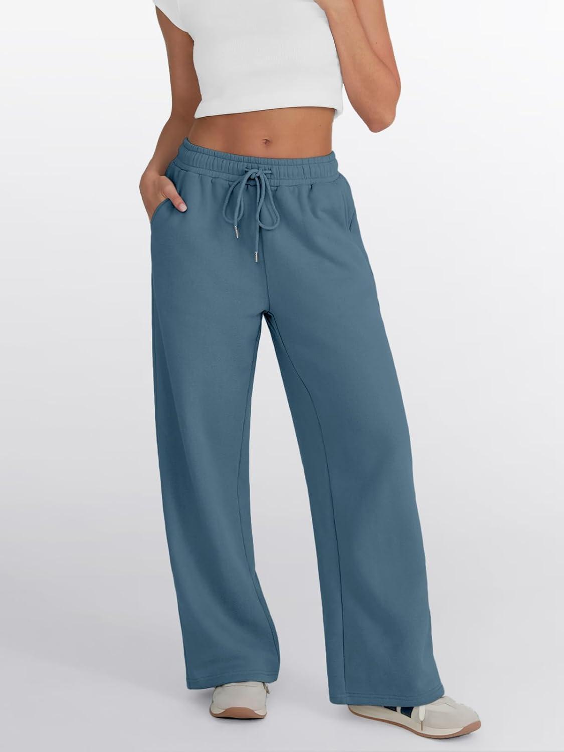 Trendy Queen Womens Wide Leg Sweatpants Baggy Lounge Travel Pants Fall Fashion Outfits 2025 Winter Joggers Clothes(Hazeblue)