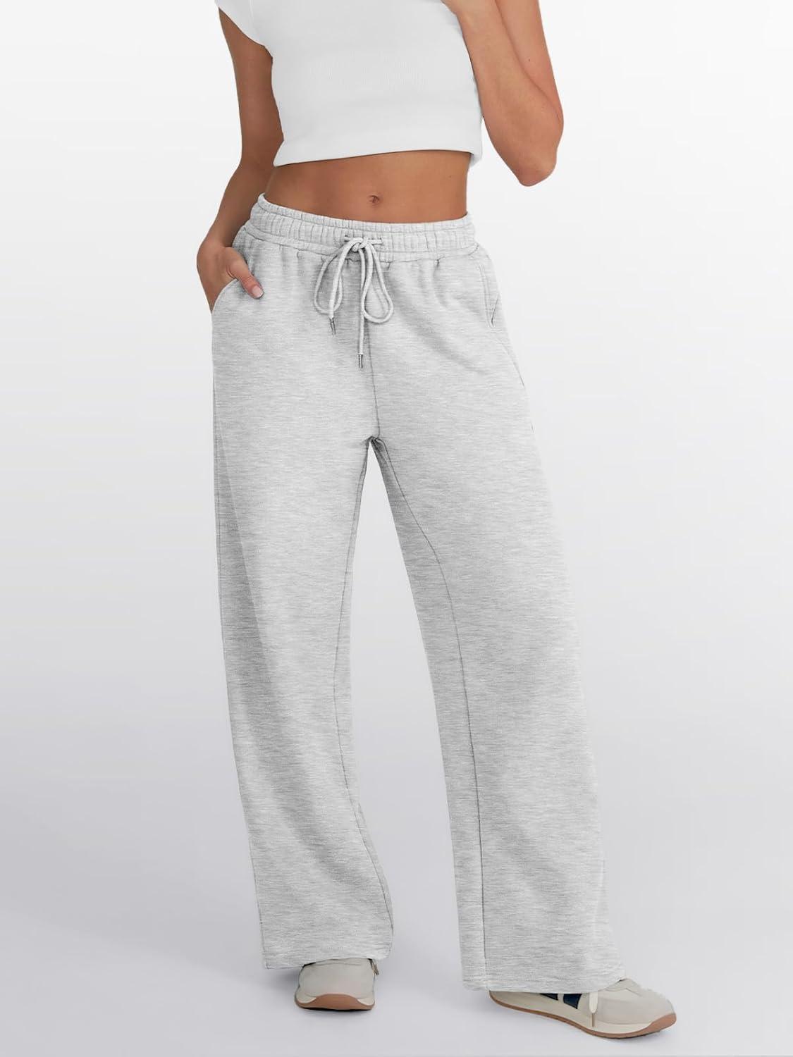 Trendy Queen Womens Wide Leg Sweatpants Drawstring High Waisted Lounge Barrel Pants Fall Baggy Athletic Joggers with Pockets(Grey)