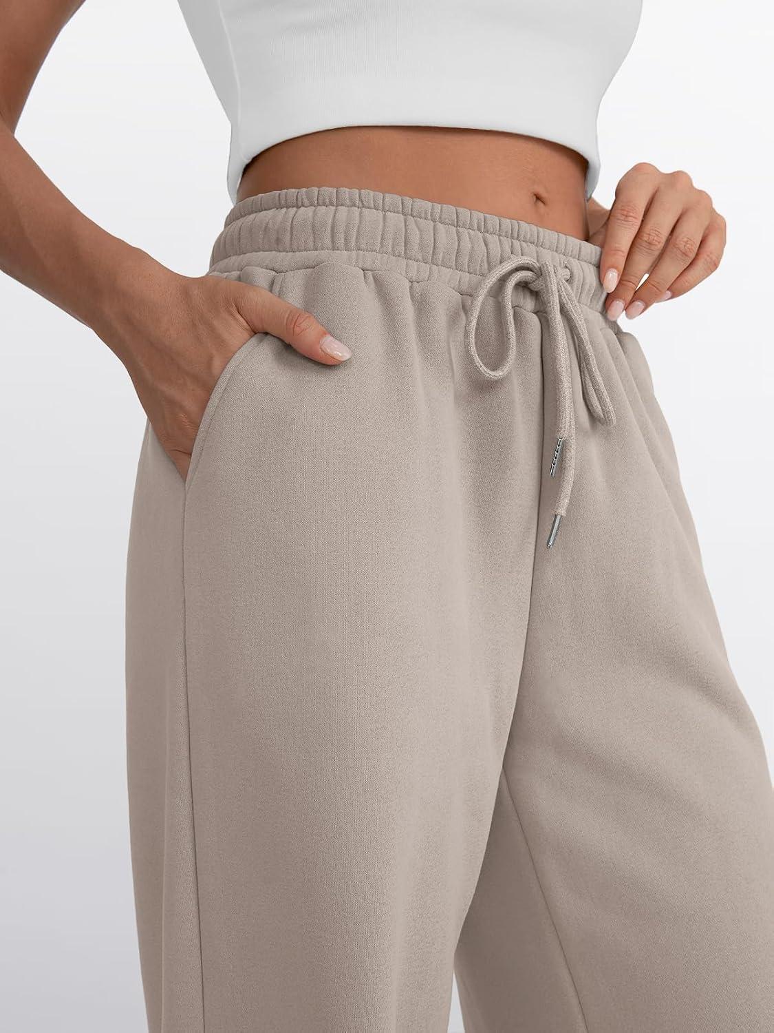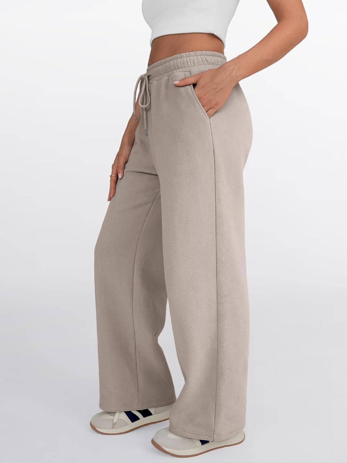 Trendy Queen Womens Wide Leg Sweatpants High Waisted Baggy Lounge Pants Drawstring Athletic Flared Joggers with Pockets(Coffeegrey)