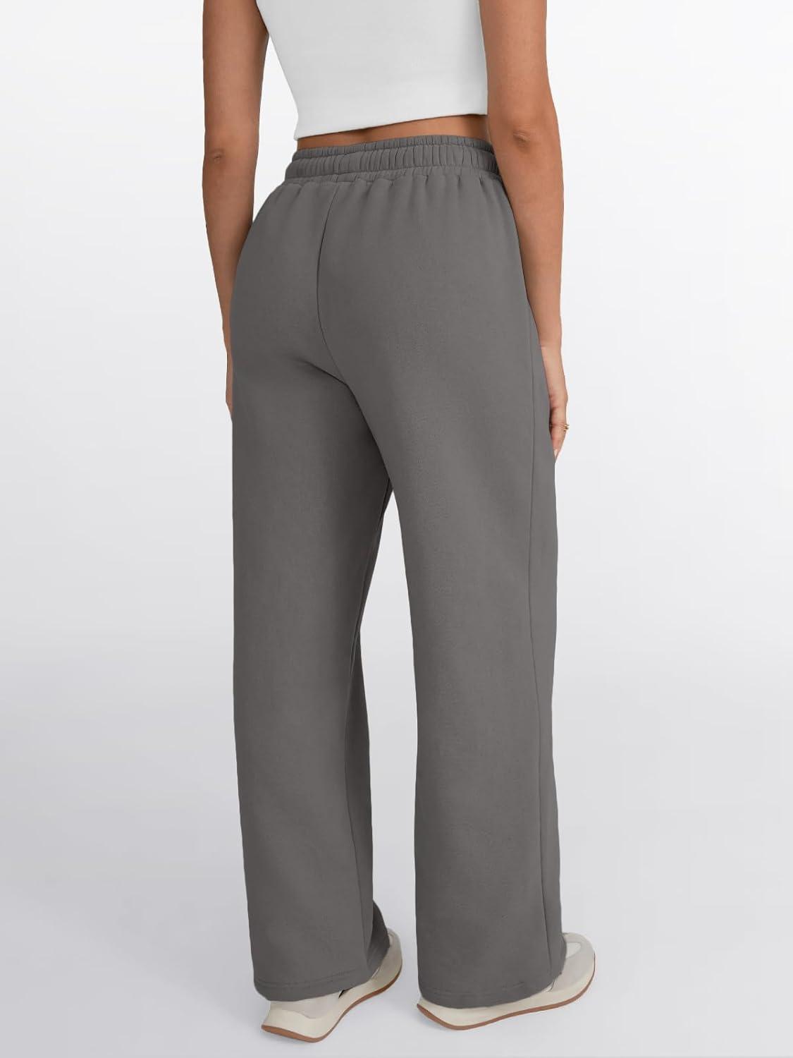 Trendy Queen Womens Wide Leg Sweatpants High Waisted Baggy Lounge Pants Drawstring Athletic Flared Joggers with Pockets(Darkgrey)