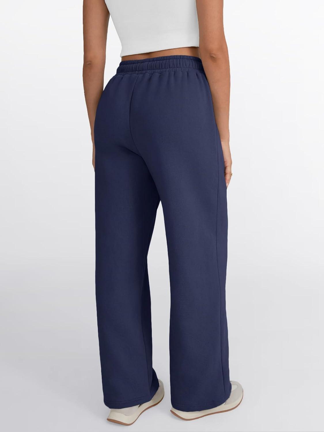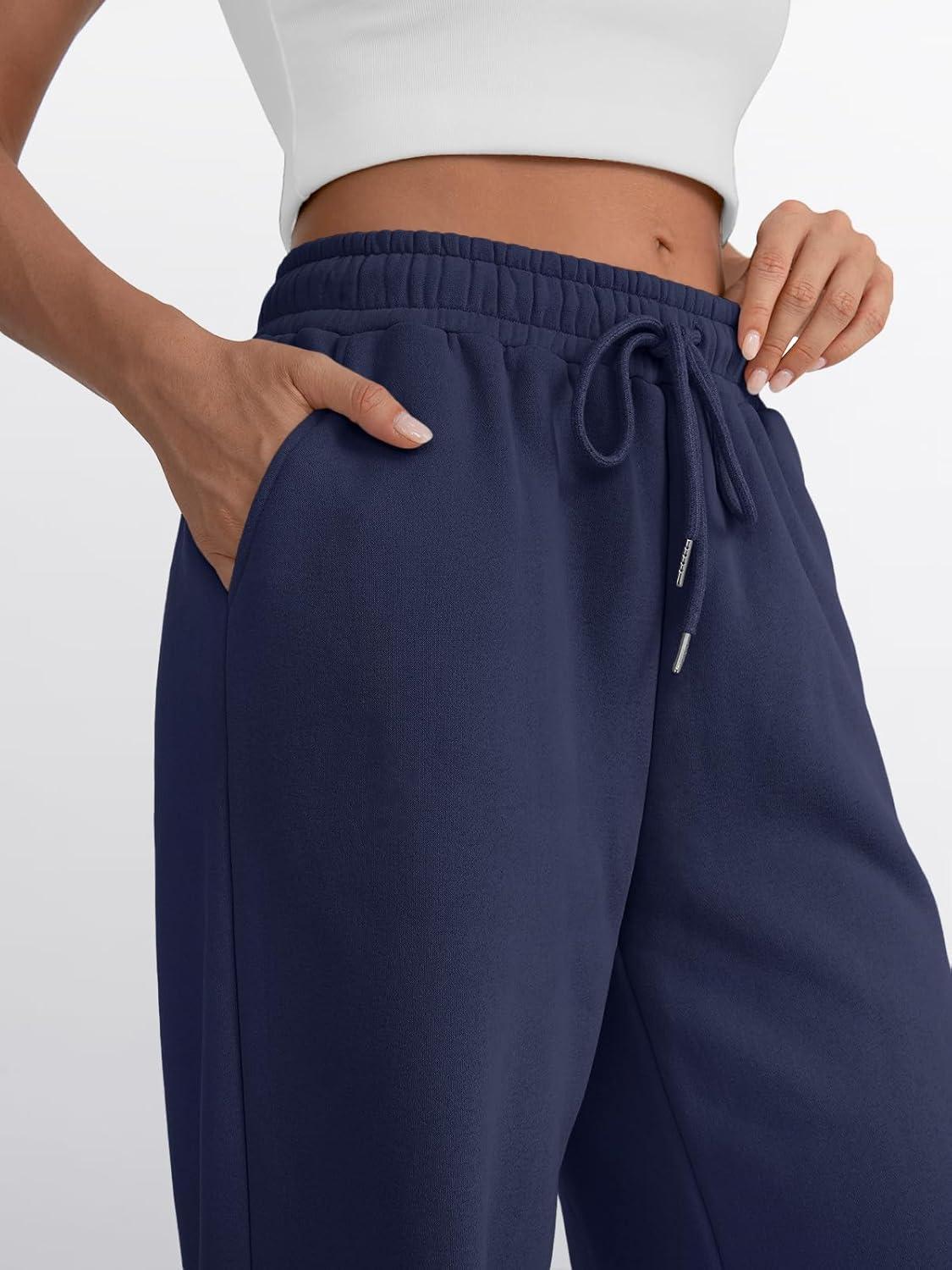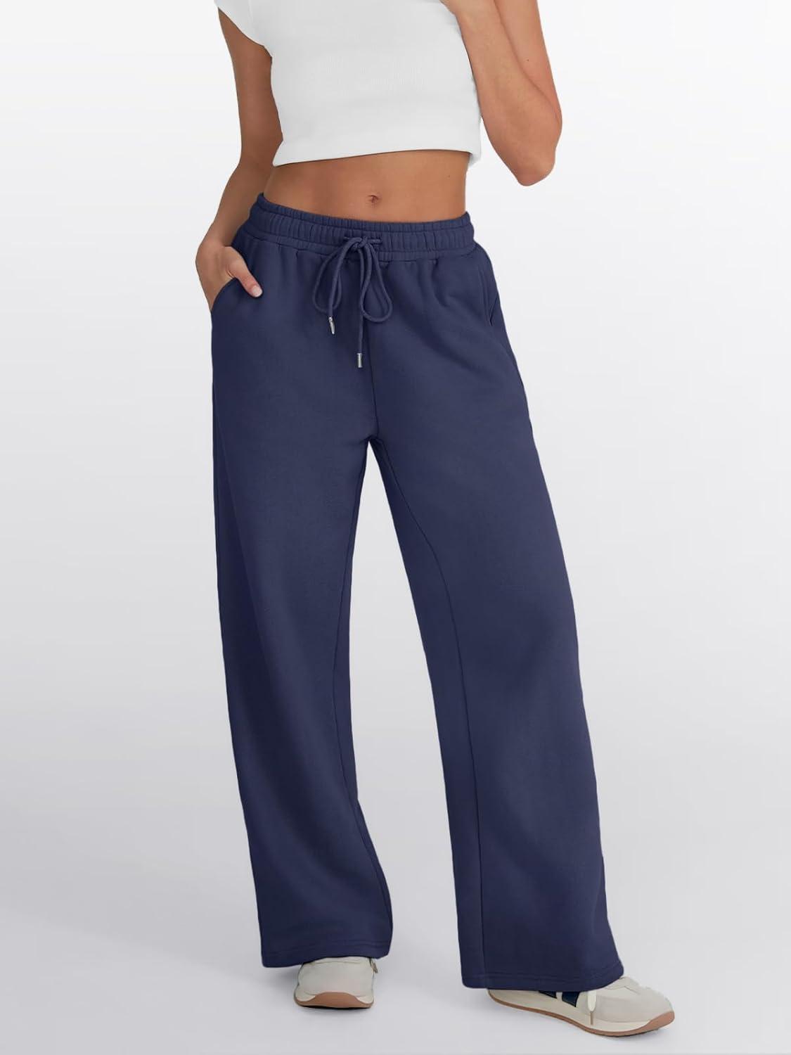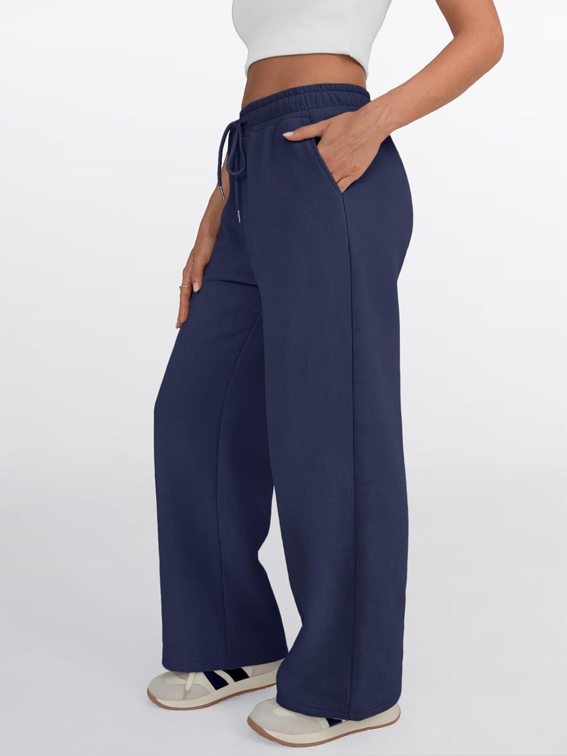 Trendy Queen Womens Wide Leg Sweatpants High Waisted Baggy Lounge Pants Drawstring Athletic Flared Joggers with Pockets(Navy)