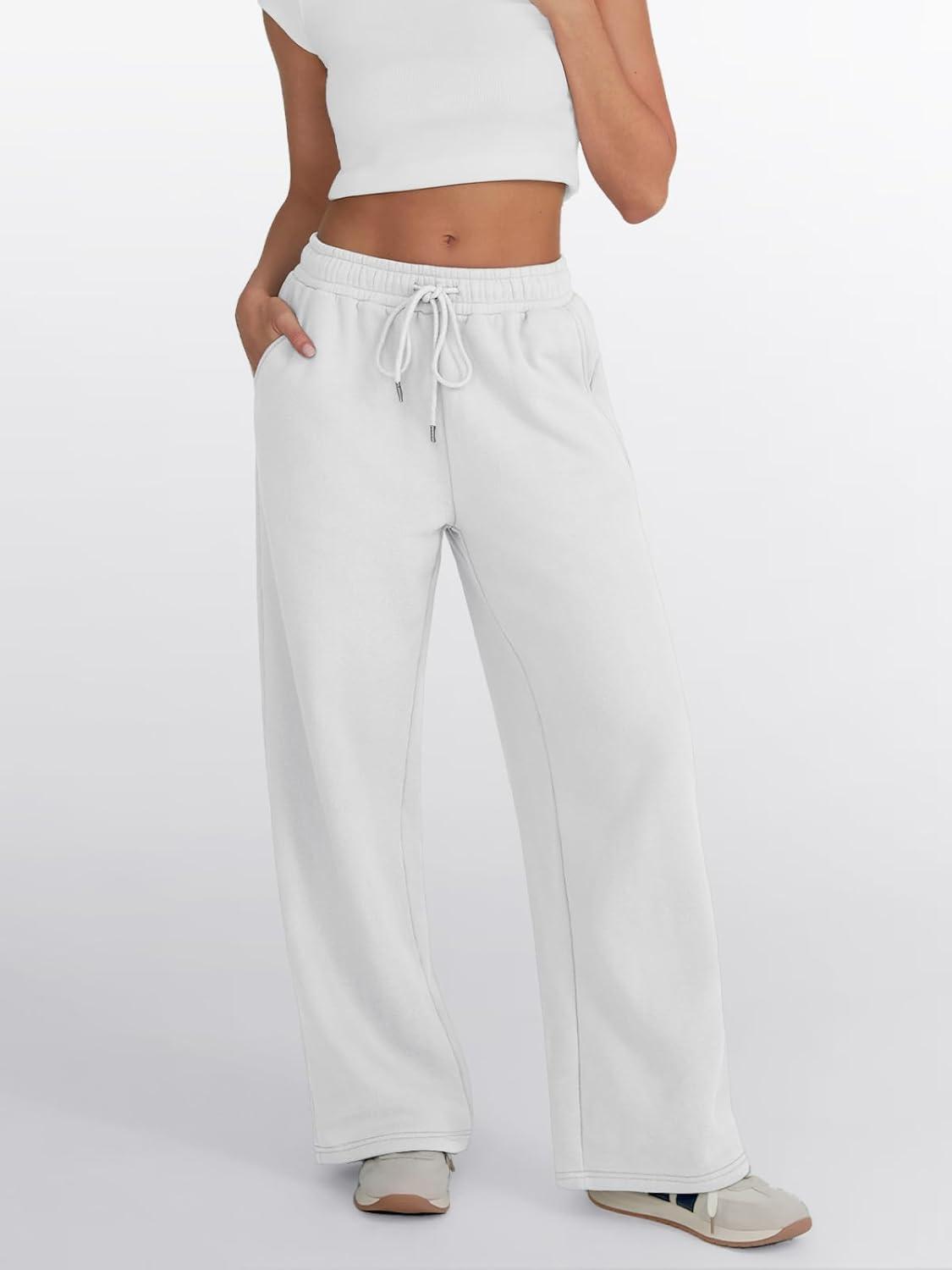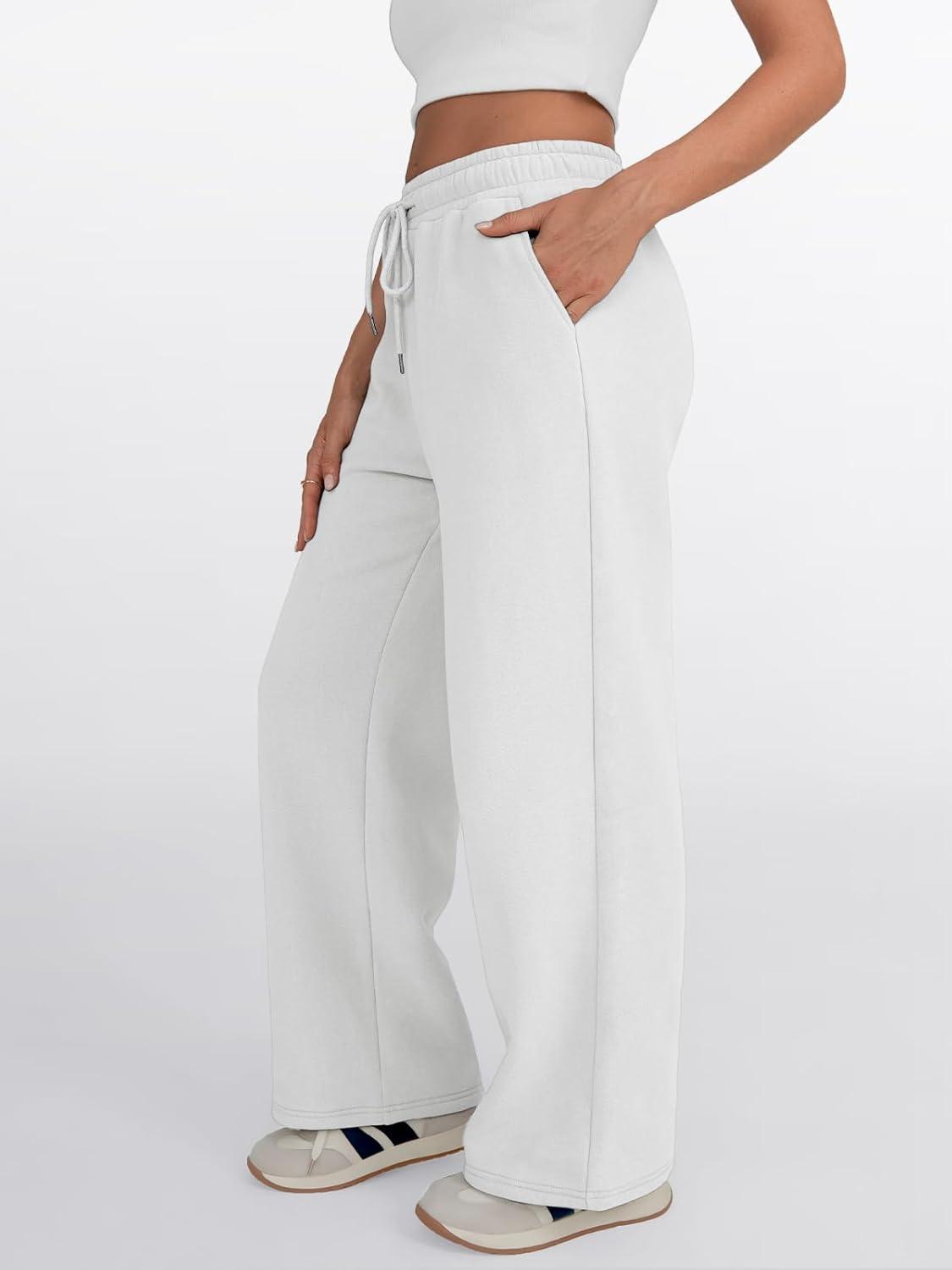 Trendy Queen Womens Wide Leg Sweatpants High Waisted Baggy Lounge Pants Drawstring Athletic Flared Joggers with Pockets(White)