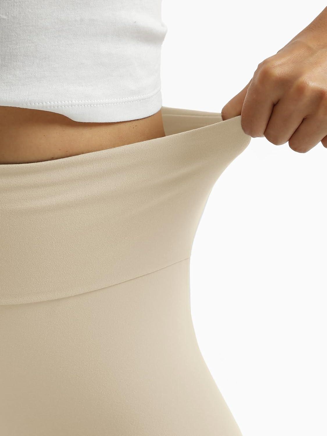 Trendy Queen Women’s Wide Leg Yoga Pants Bootcut Workout Flare Leggings Trendy High Waisted Fold Over 2025 Fall Outfits(Lightkhaki)