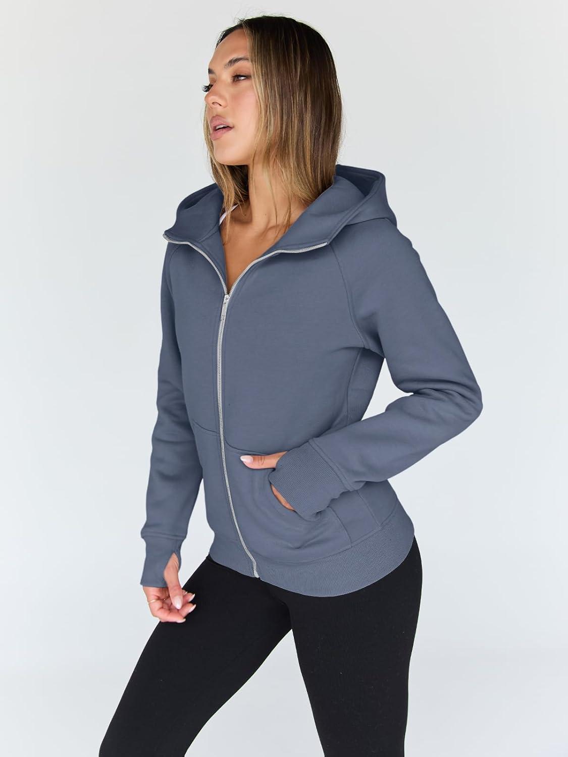 Trendy Queen Womens Zip Up Hoodies Fleece Jackets Oversized Sweatshirts Fall Fashion Outfits Sweaters Winter Clothes(Greyblue)