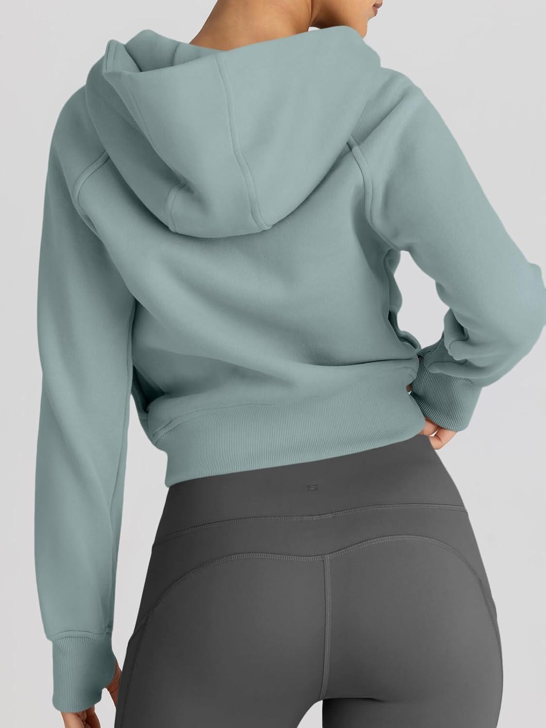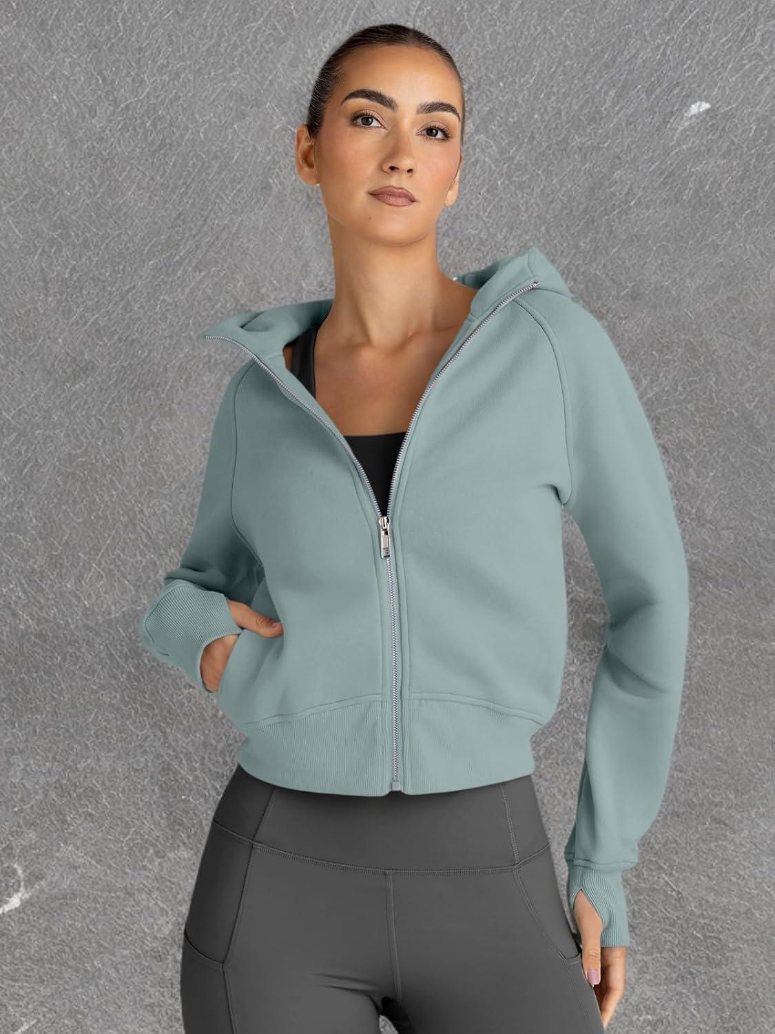 Trendy Queen Womens Zip Up Hoodies Jackets Cropped Sweatshirts Fleece Fall Outfits Casual Comfy Y2k Tops Winter Clothes 2025(Greygreen)