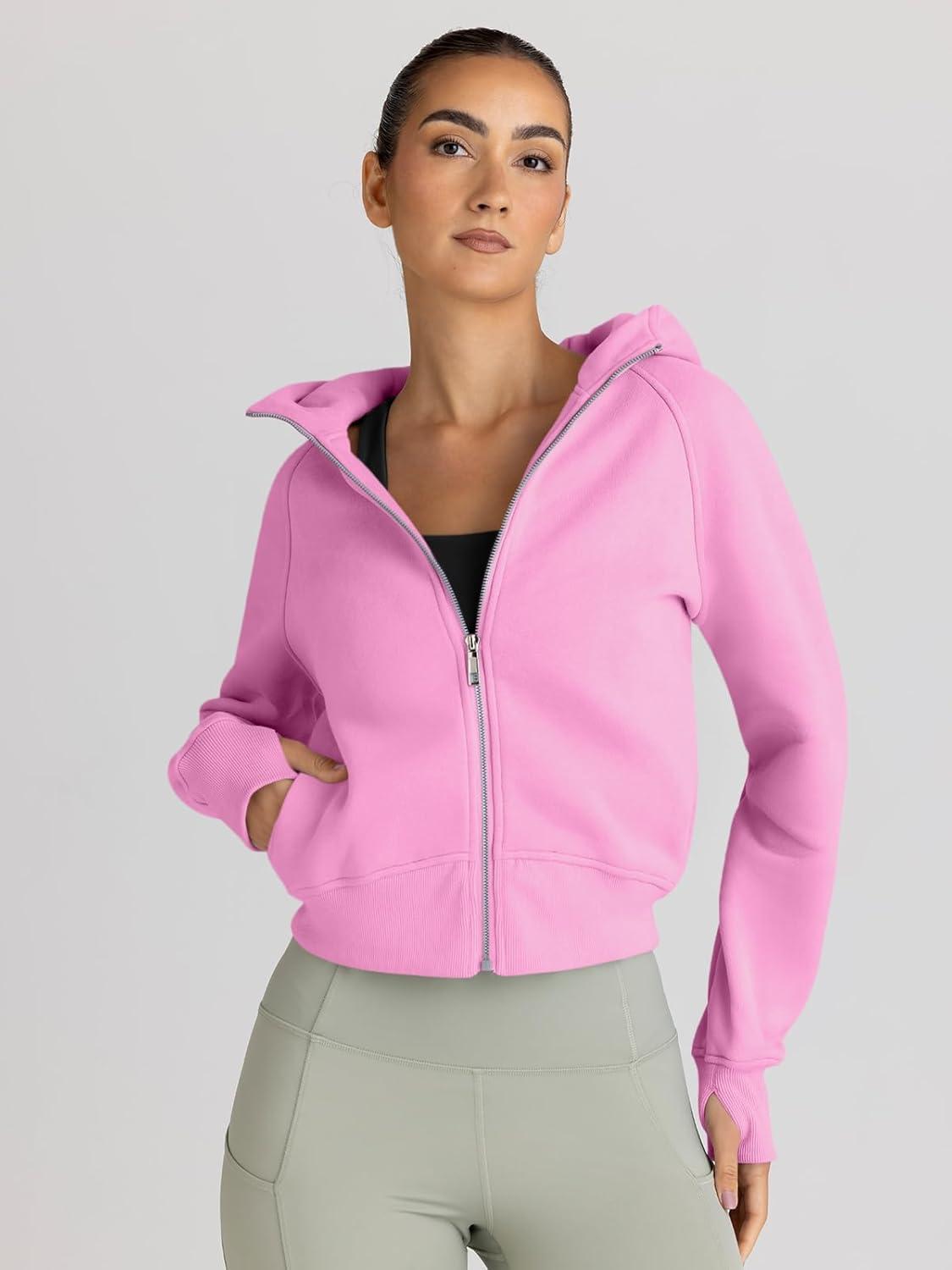 Trendy Queen Womens Zip Up Hoodies Jackets Cropped Sweatshirts Fleece Fall Outfits Casual Comfy Y2k Tops Winter Clothes 2025(Pink)