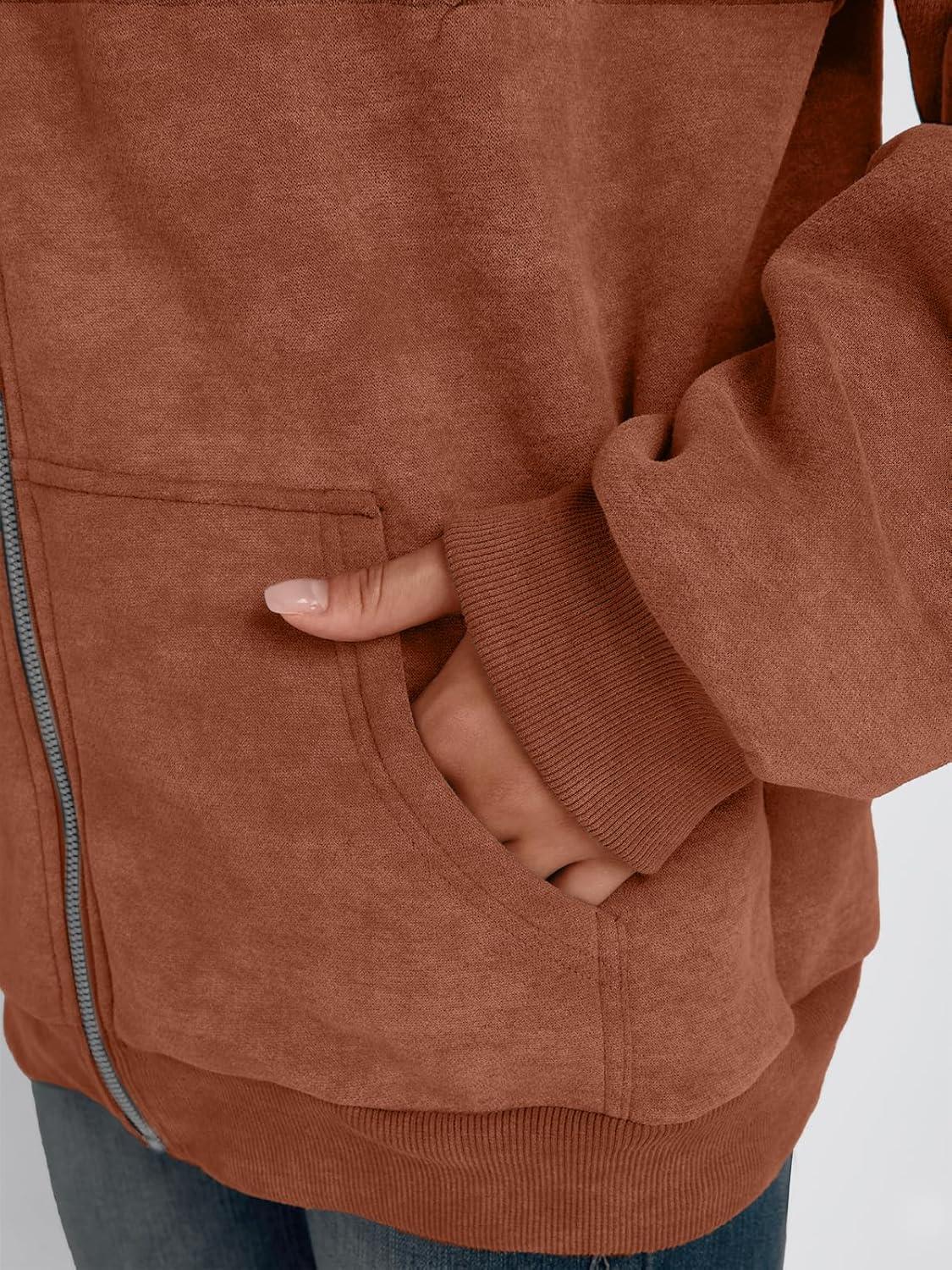 Trendy Queen Zip Up Hoodies for Women Acid Wash Oversized Sweatshirt Fall Fashion Jacket Cute Y2k Winter teen girls pullover(Brown)