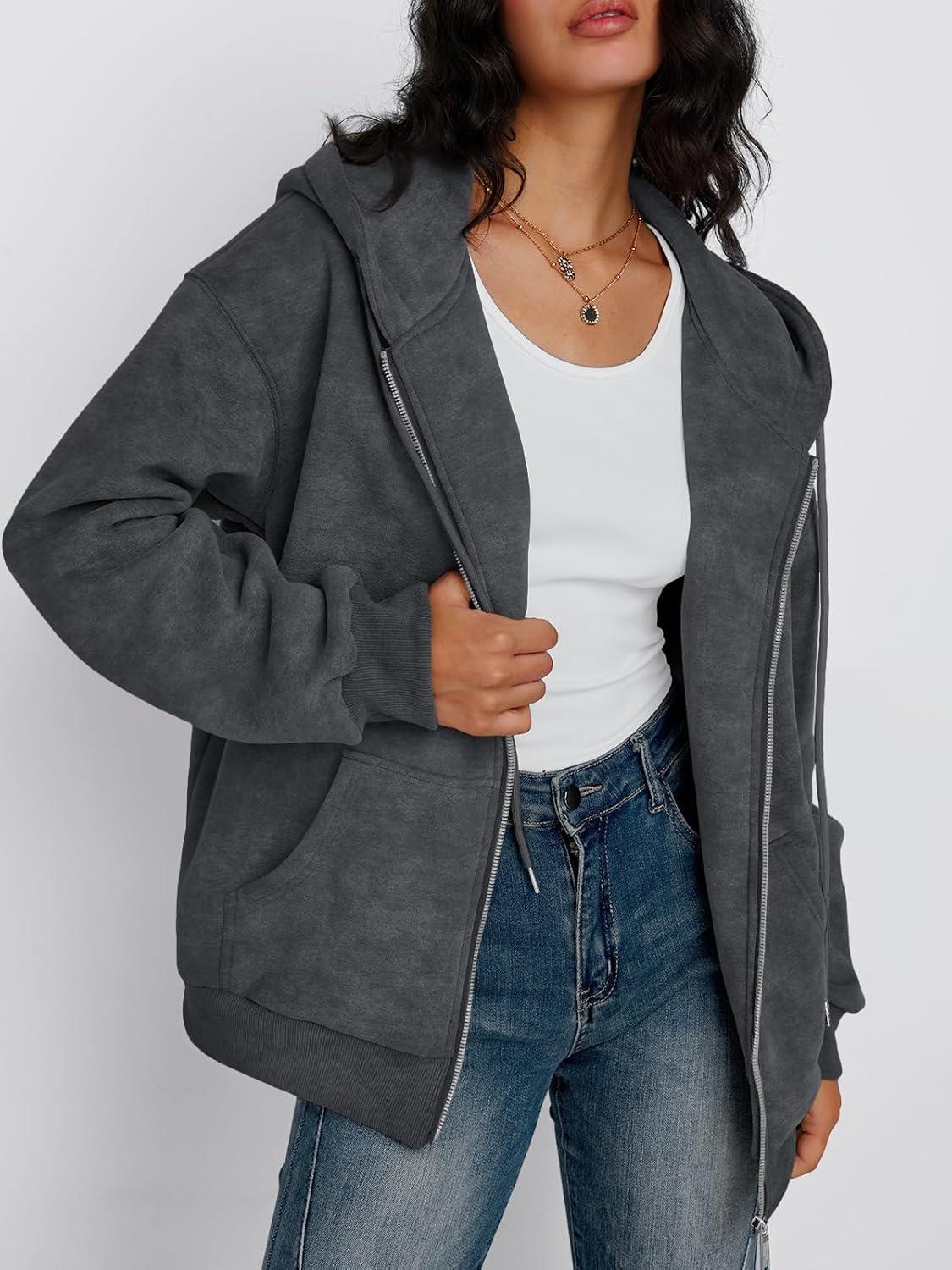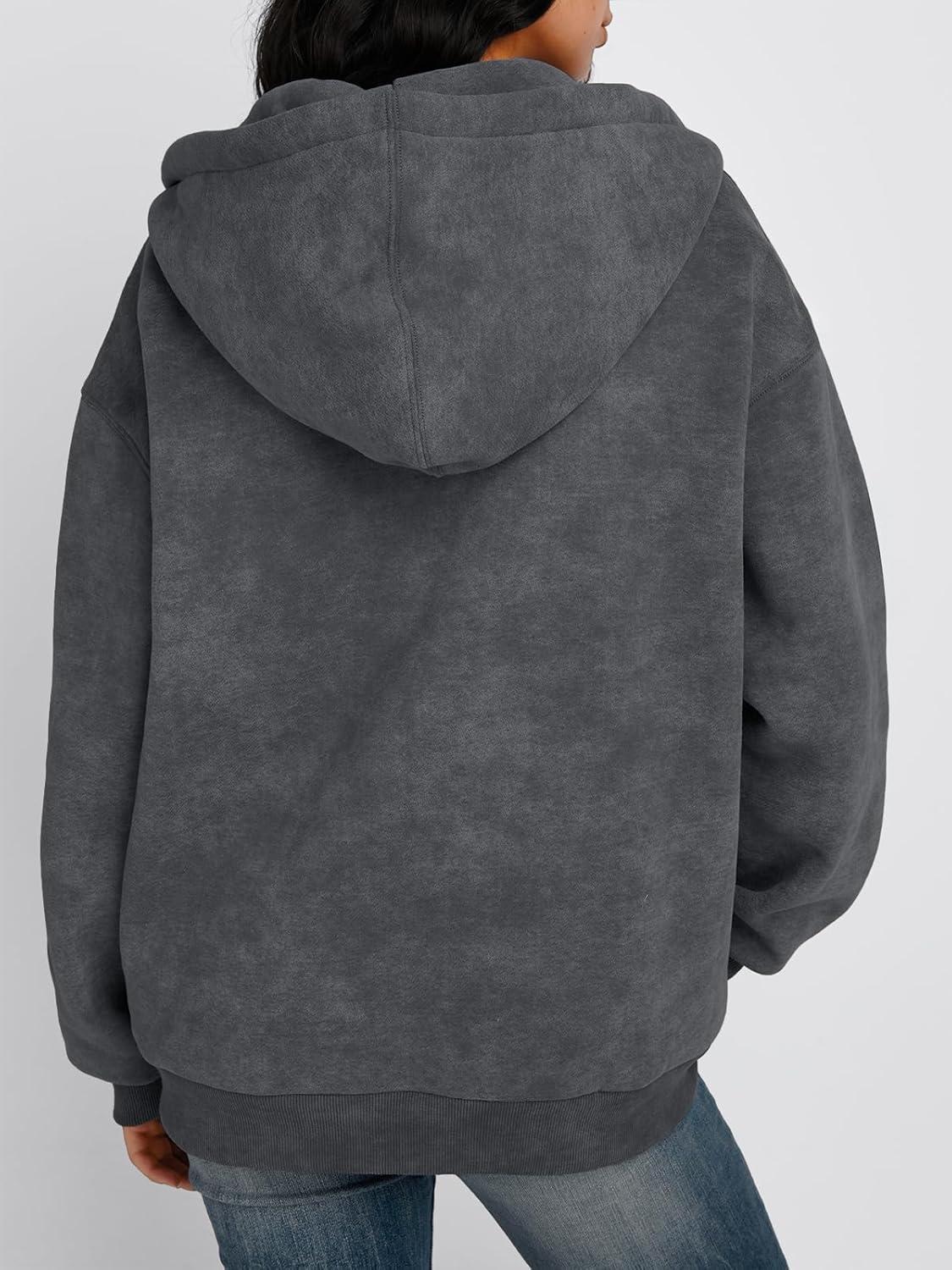 Trendy Queen Zip Up Hoodies for Women Acid Wash Oversized Sweatshirt Fall Fashion Jacket Cute Y2k Winter teen girls pullover(Grey)