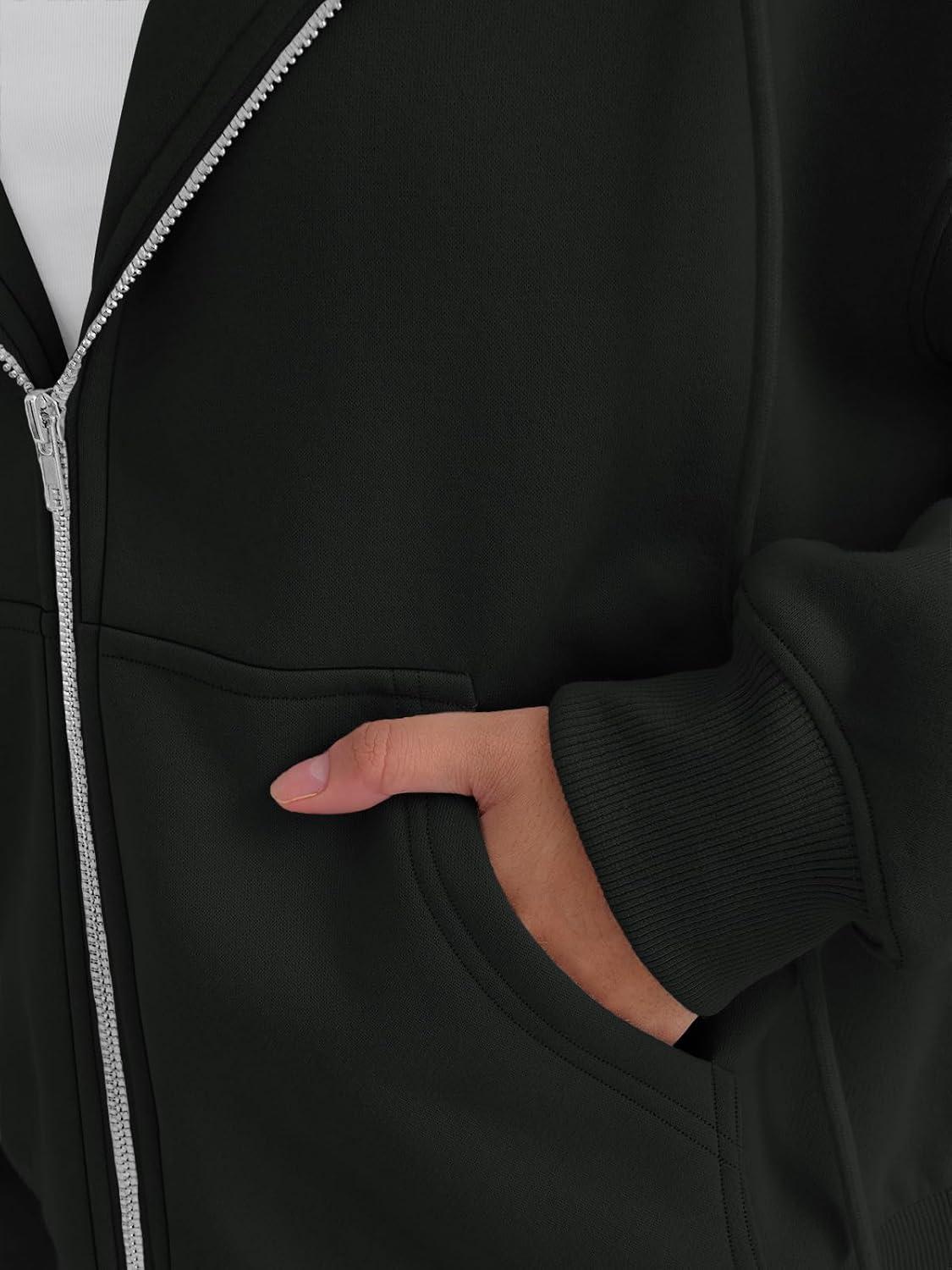 Trendy Queen Zip Up Hoodies For Women Cropped Sweatshirts Fall Fashion Outfits 2025 Y2k Fleece Teen Girls Clothes(Black)