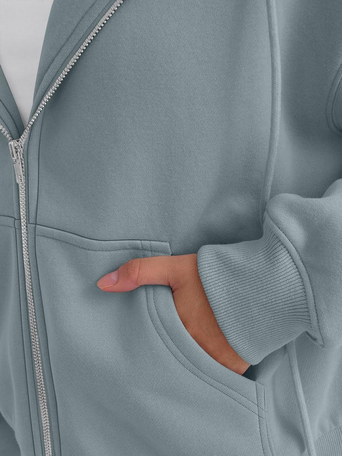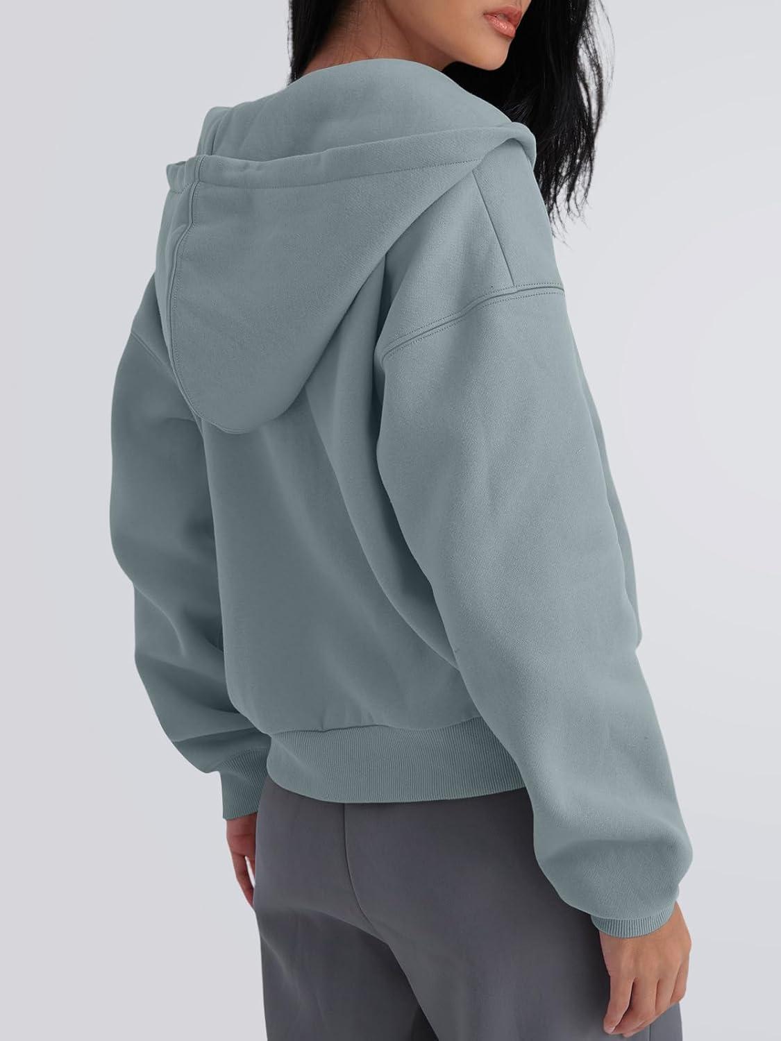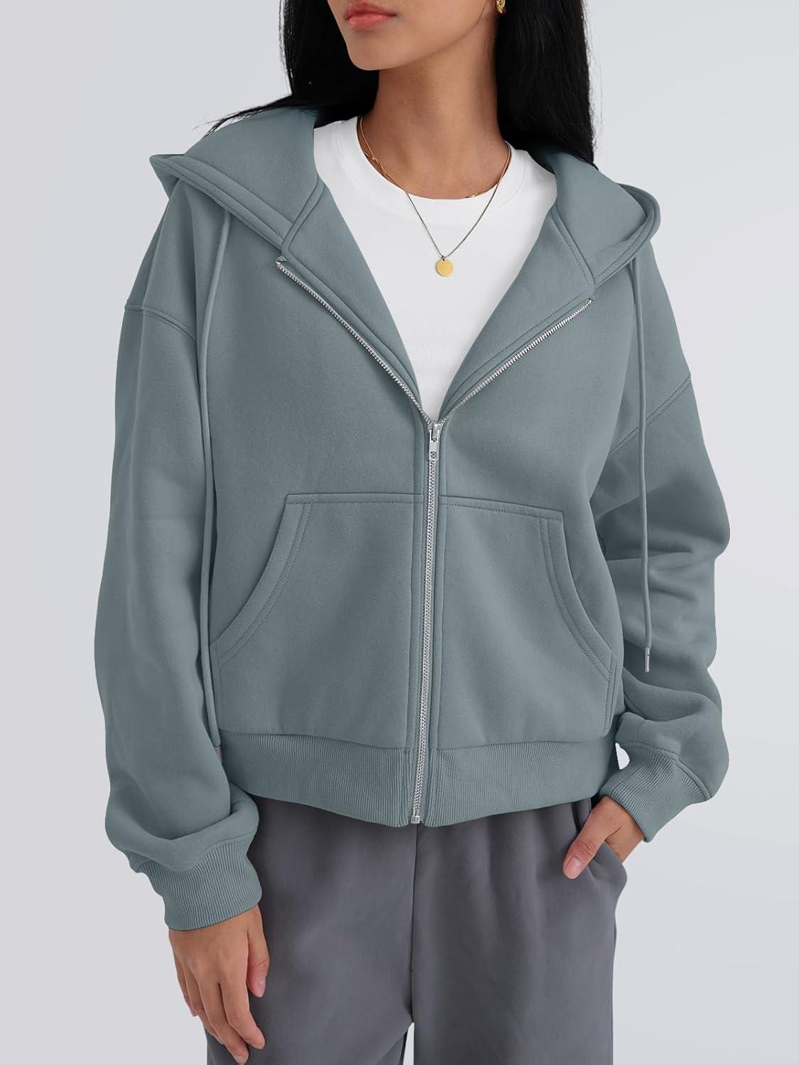 Trendy Queen Zip Up Hoodies For Women Cropped Sweatshirts Fall Fashion Outfits 2025 Y2k Fleece Teen Girls Clothes(Grey Blue)