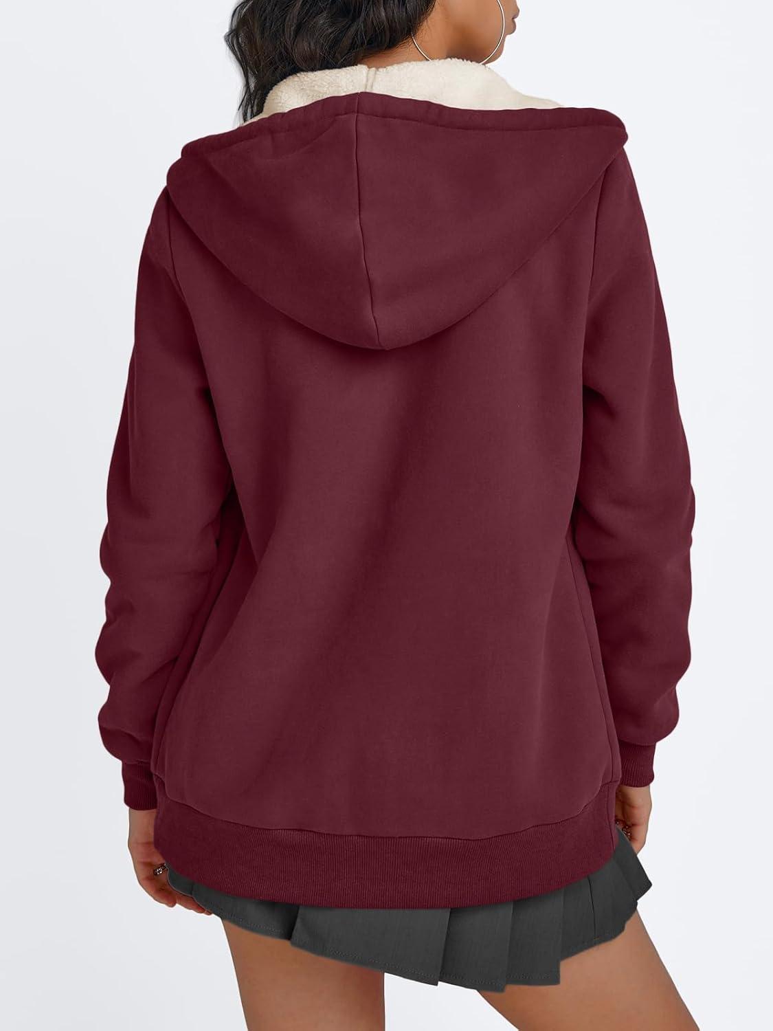 Women zip up jackets fleece coat casual heavyweight hoodies sweatshirt fashion warm winter clothes fall outfits long sleeve tops